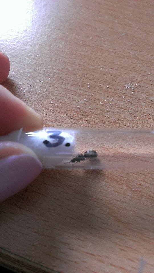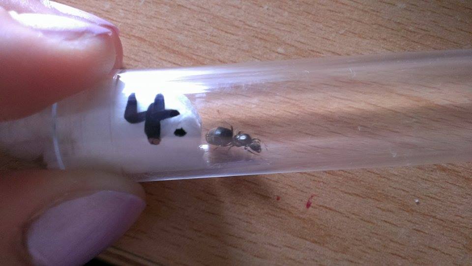 Ich habe dieses Exemplar liebevoll "Terrorqueen" getauft, seitdem sie in ihrem Glas ist, kaut sie nur auf der Watte rum, ist sehr nervös und wirkt aggressiver als die anderen, Eier hat sie auch nicht gelegt.