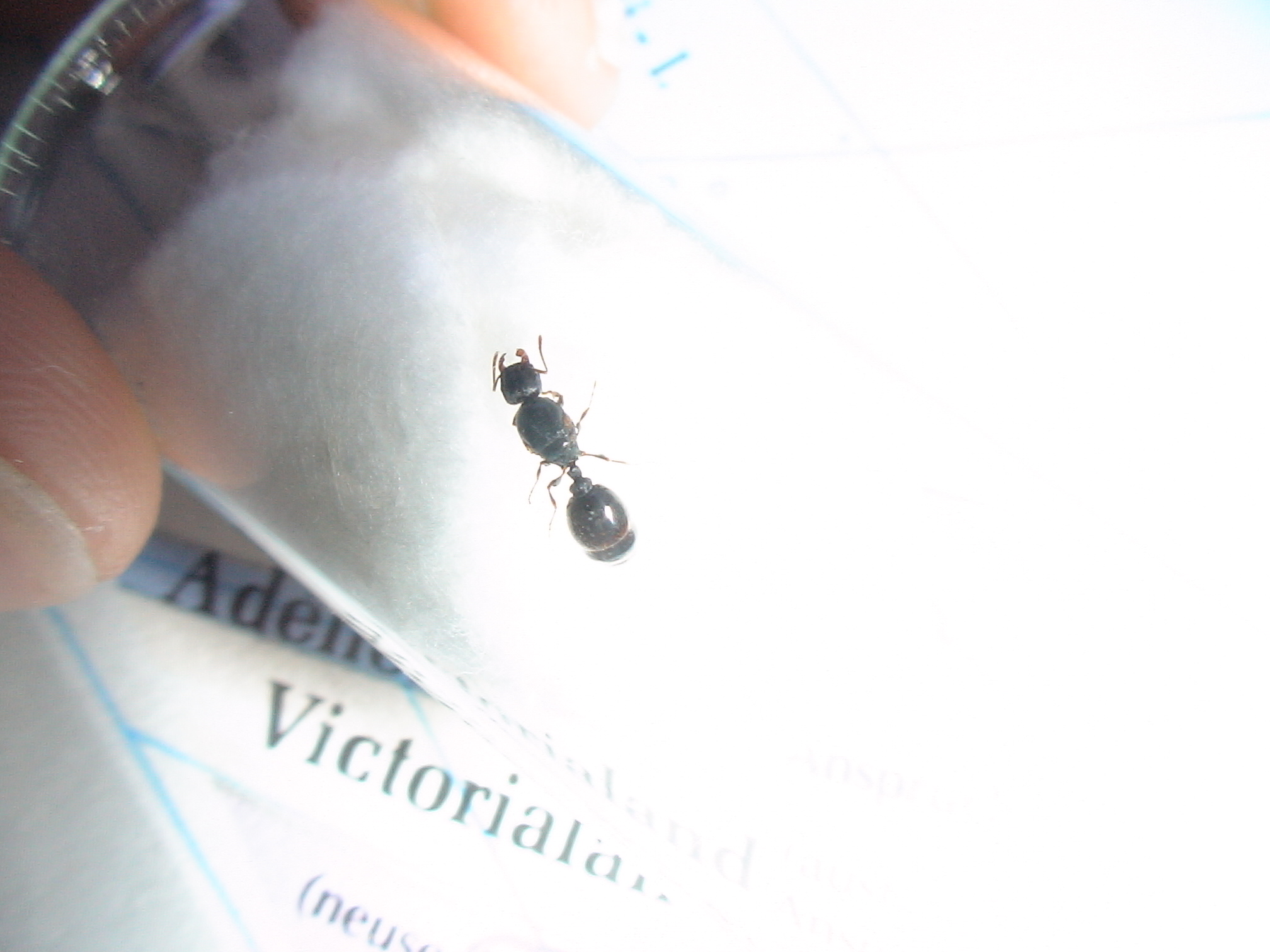 Hallo, hab heut ne komische Ameise in meinem Garten gefunden, die ist keine 0,8 cm groß, hat mich etwas an eine langezogene Lasius Niger erinnert mit längeren Hinterleib. Der "Brustkorb" ist aber deutlich dicker als bei Arbeiterinnen und man kann kleine Flügelabbruchstellen erkennnen, dass hat mich annehmen lassen, dass es eine Königin ist. Vll könnt ihr mir helfen, wär euch sehr dankbar. Photos sind vll etwas unscharf, tut mir leid!