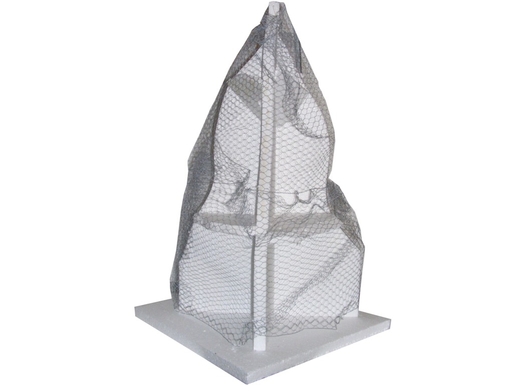 verzinktes Modelier-Drahtgewebe wird um das Gerüst gebogen.