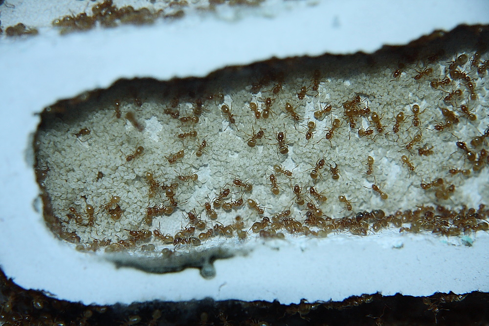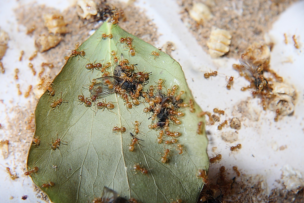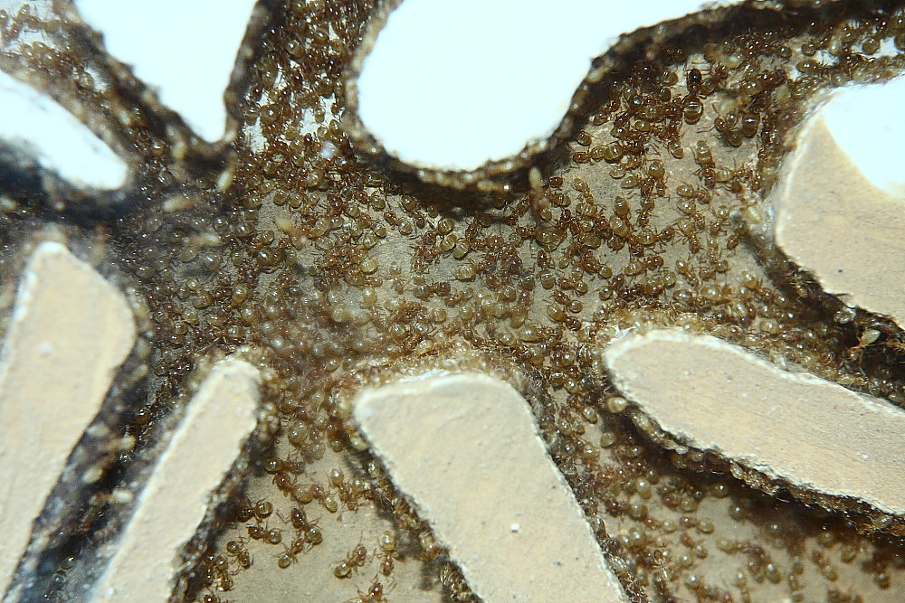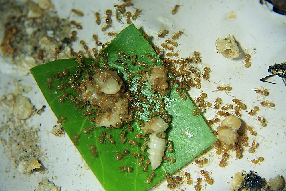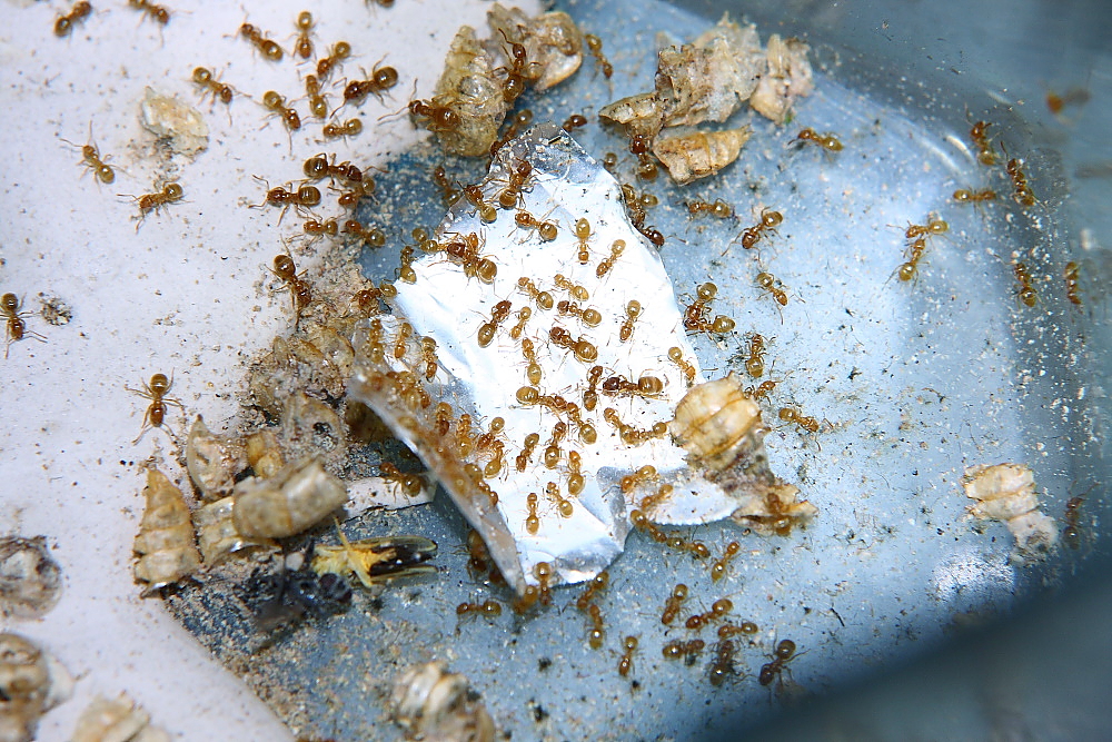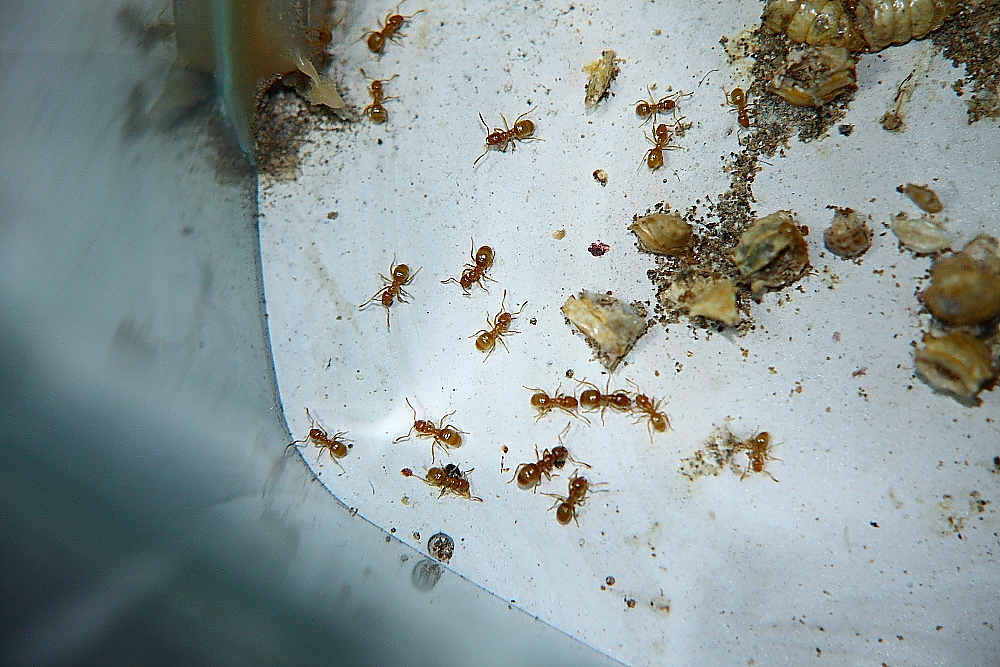 Habe ihnen ein wenig das Futter reduziert, irgendwie scheint sie das nicht besonders zu beeindrucken, anders ausgedrückt, wundere mich immer wieder, aus wie wenig Futter, diese Ameisen reichlich Nachwuchs aufziehen.