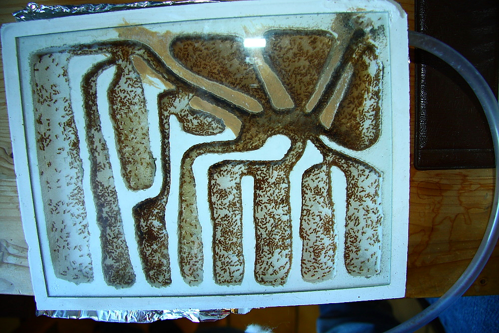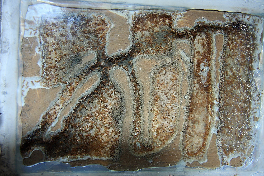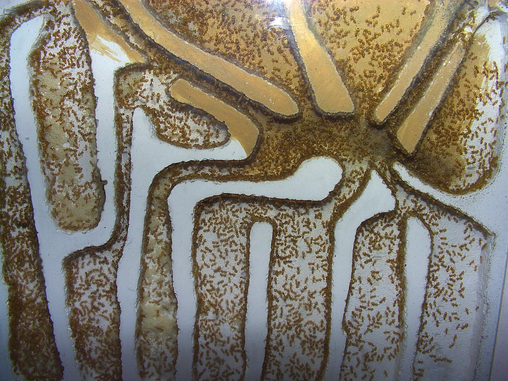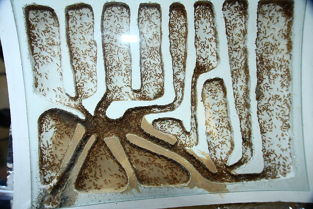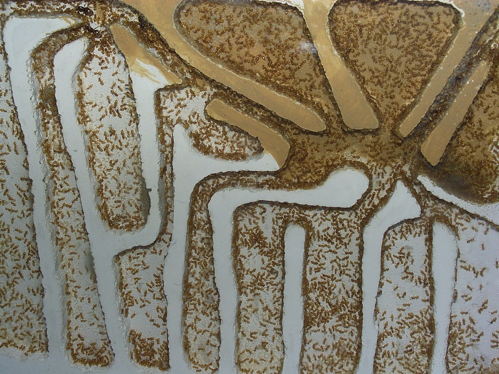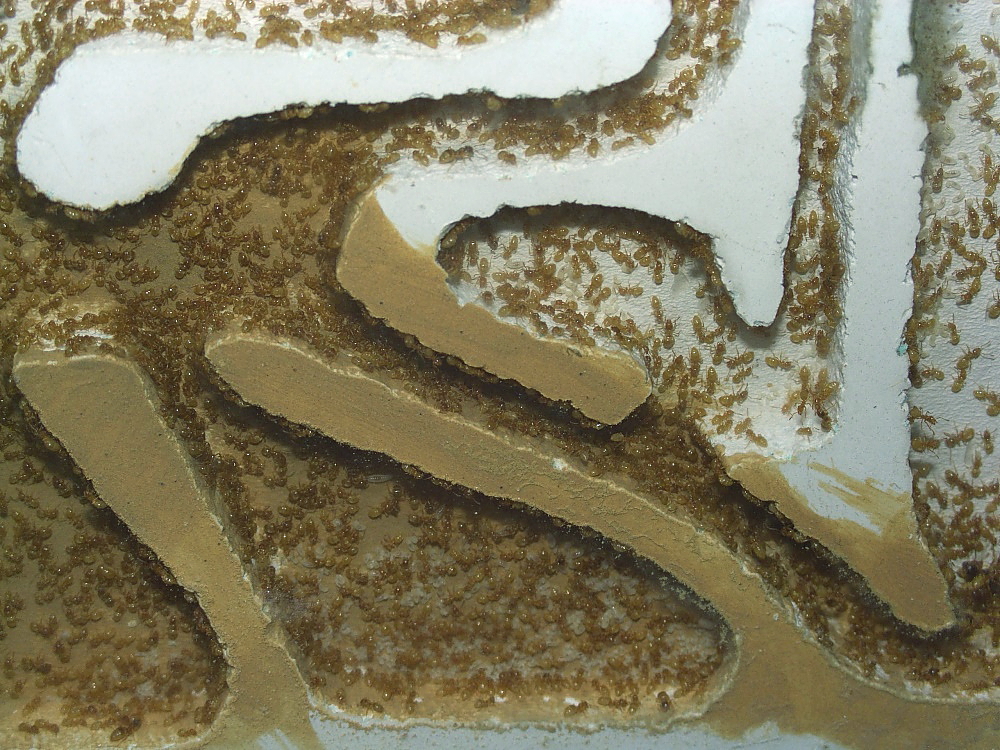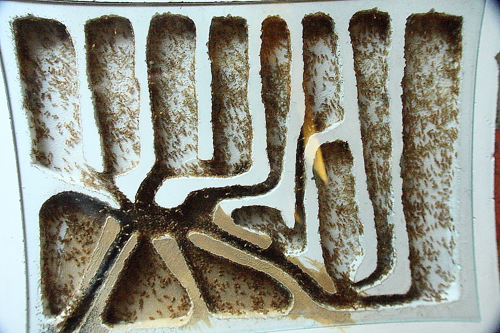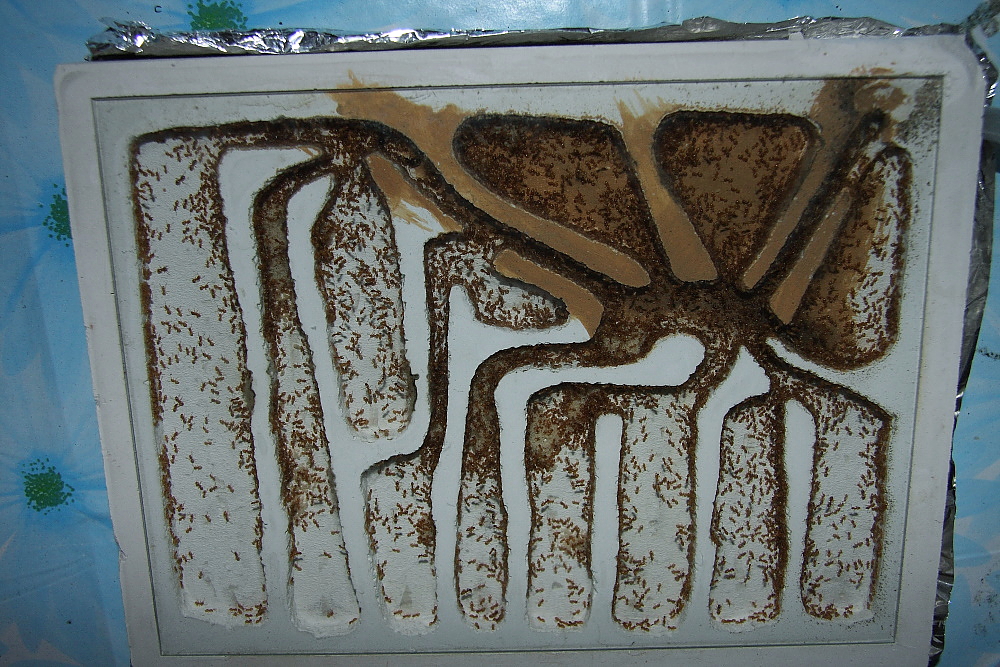 Schaut Ihr genau hin, ist zu sehen, diese Ameisen sind in der Lage zwischen Gips und Lehm zu unterscheiden.