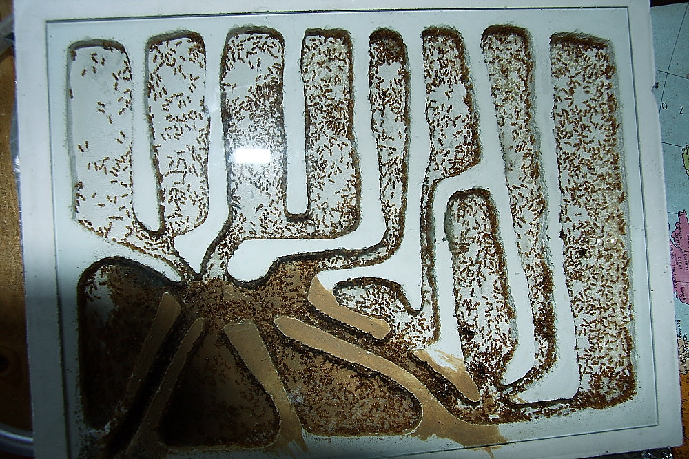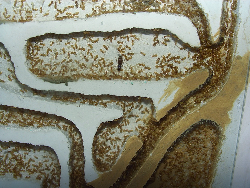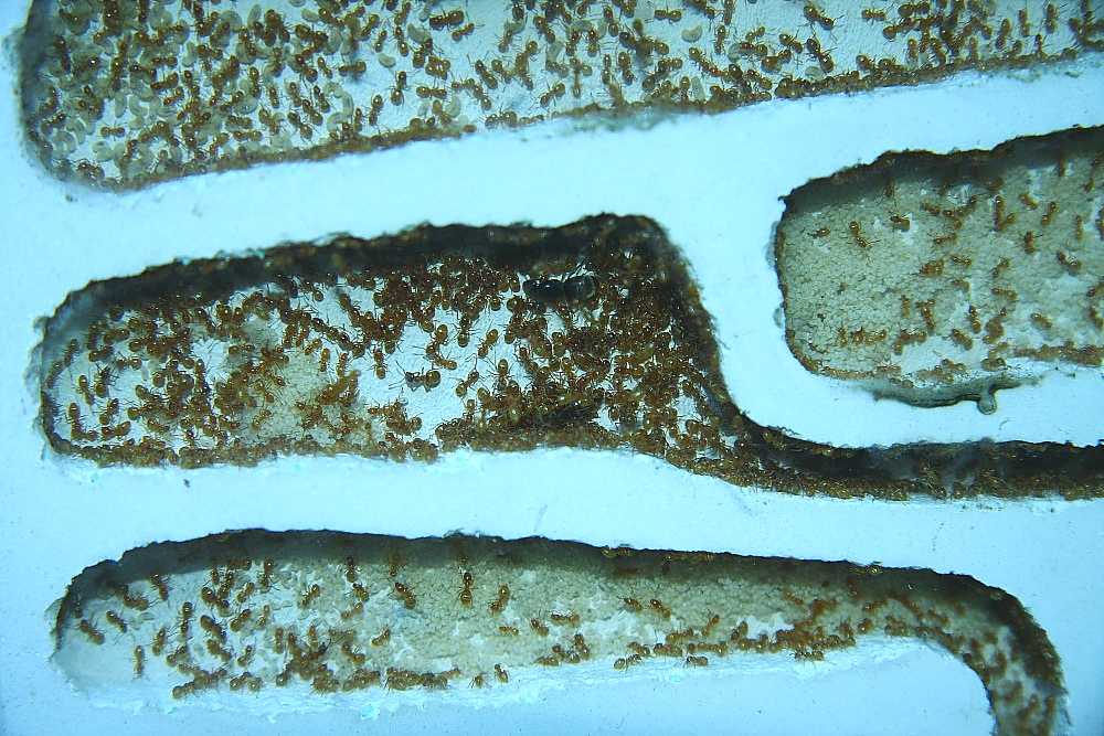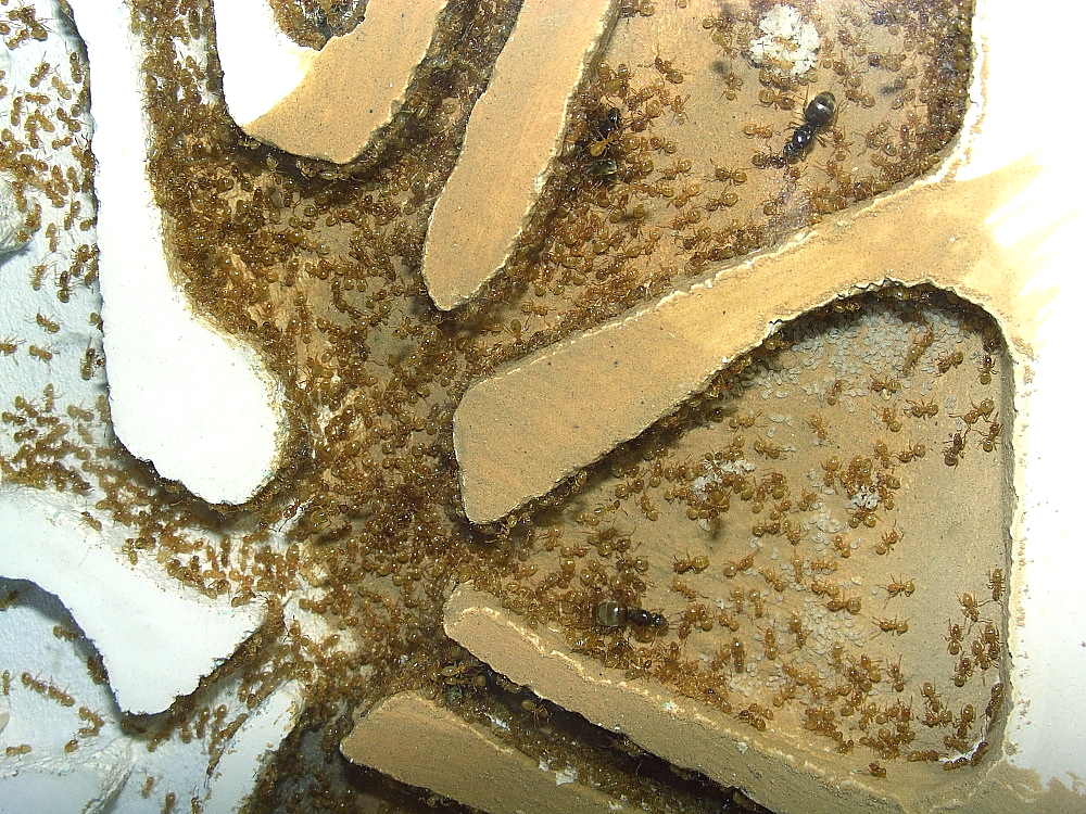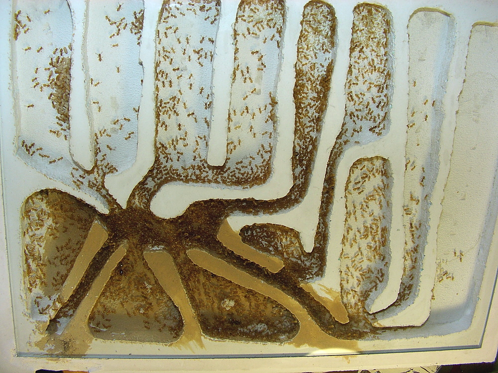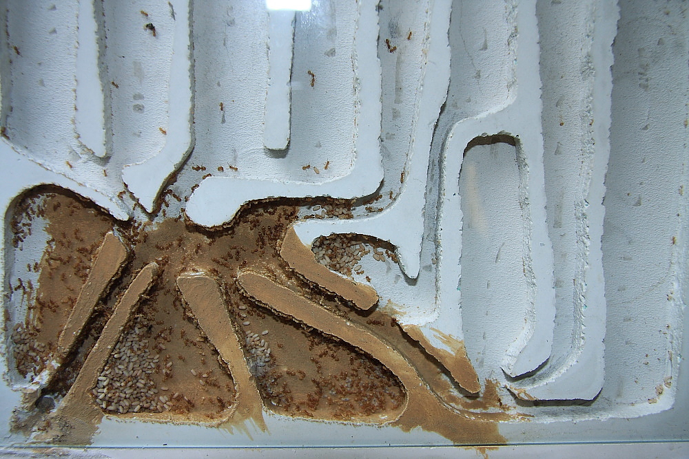 Das neue Nest ist jetzt voll akzeptiert, alle Kammern mit Ameisen bevölkert.