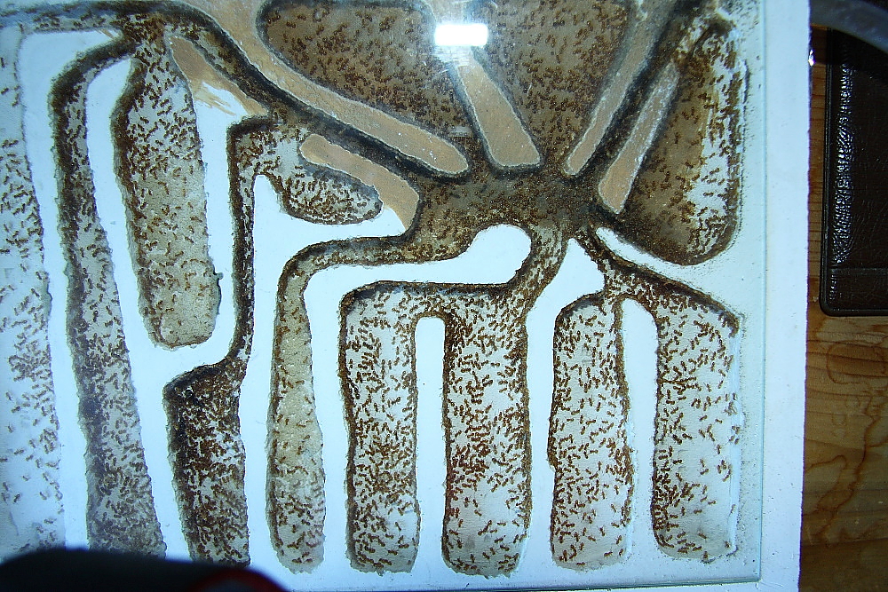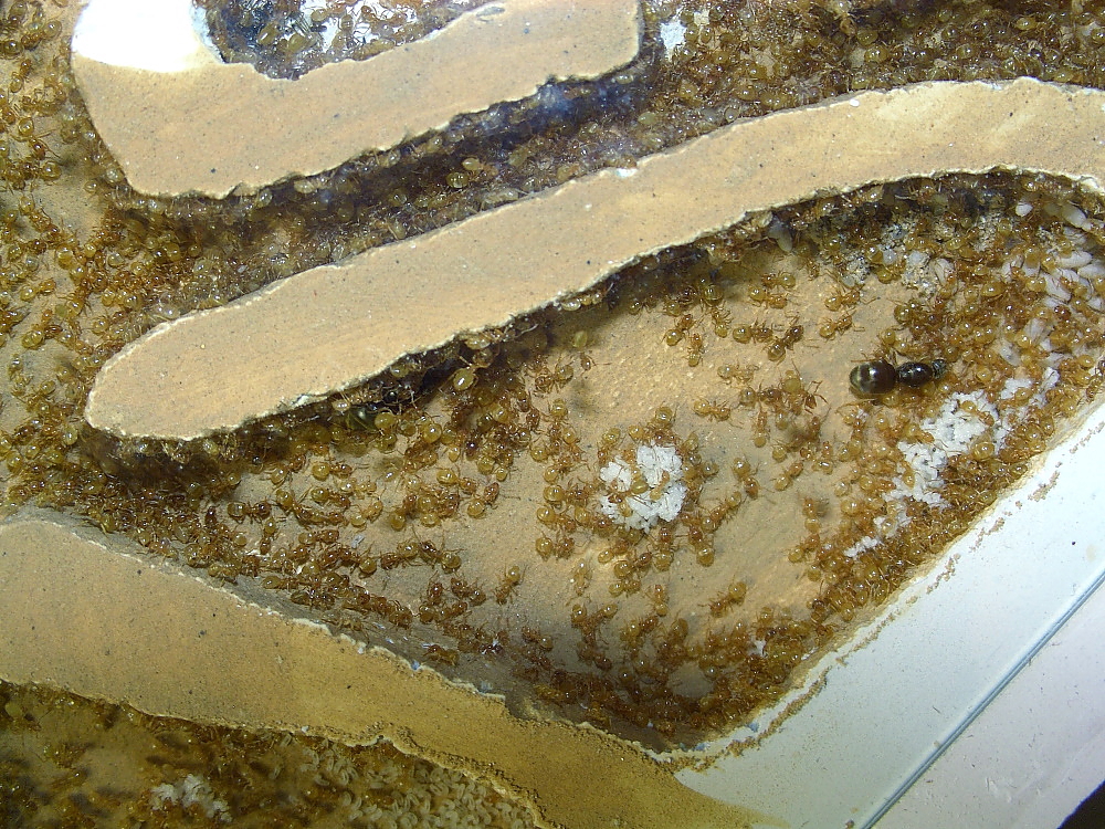 Die Königinnen haben es nach einiger Zeit vorgezogen sich ins Dunkle zu verkriechen, ansonsten wussten diese Ameisen die neue Sonnenbank zu nutzen.