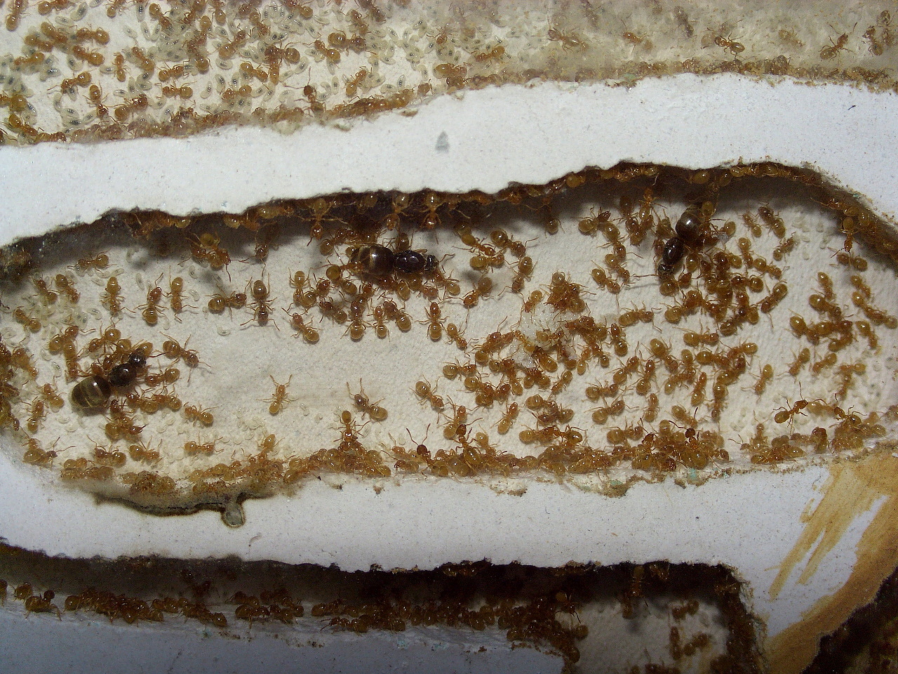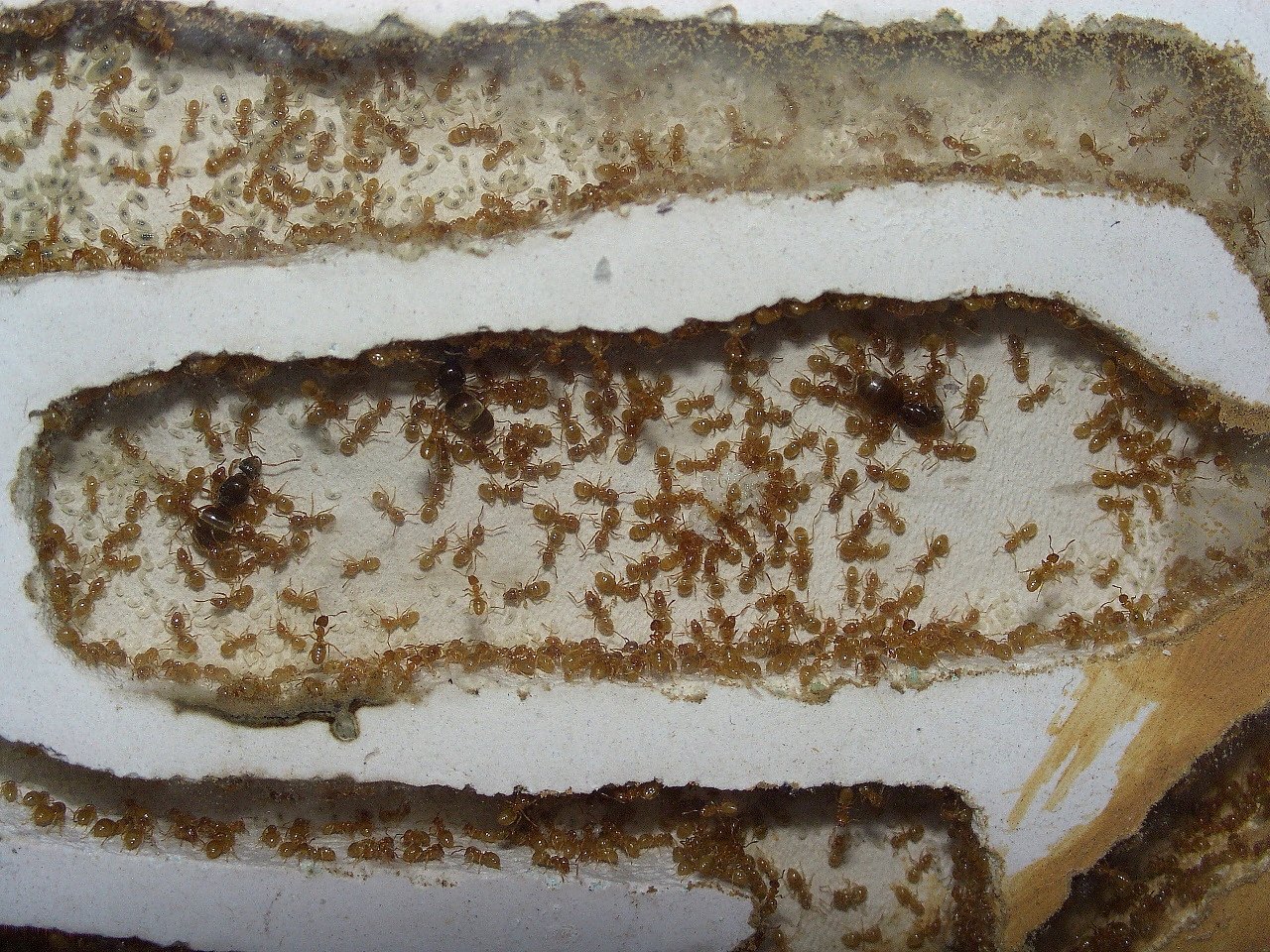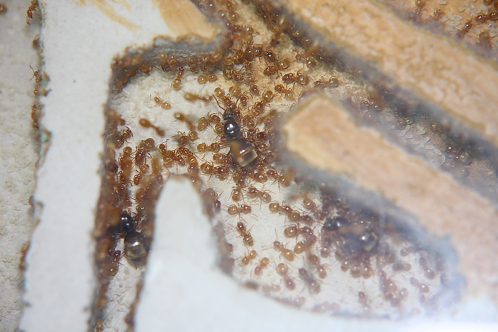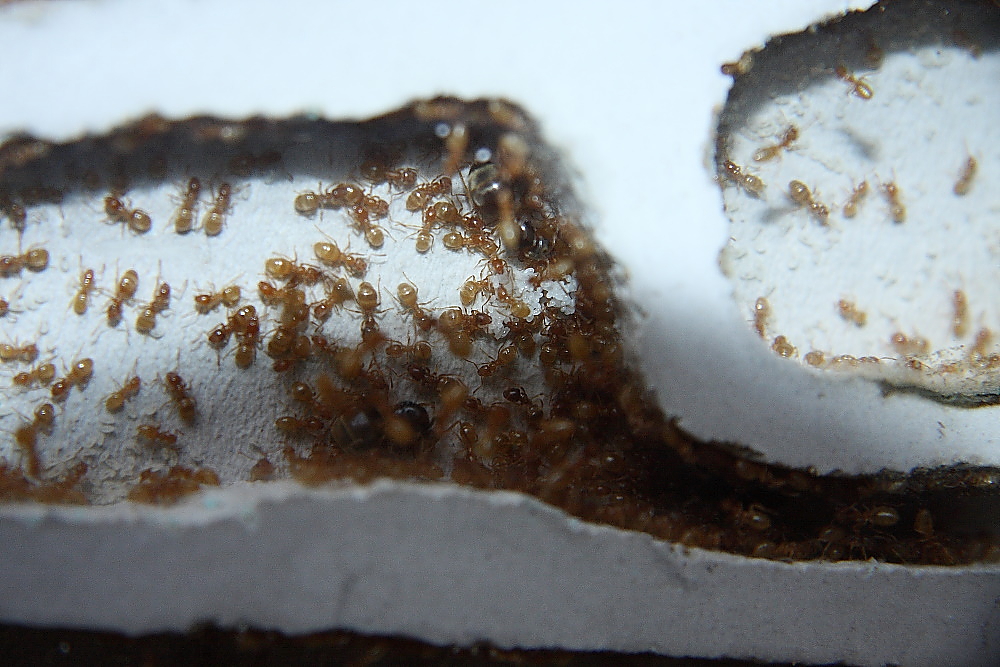 Manchmal müssen grobere Maßnahmen her um Ameisen zum Umzug zu bewegen, das Nest im Licht ohne Abdeckung war hier keine Hilfe.