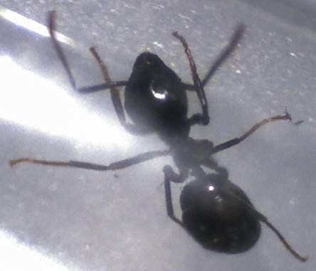 Ich vermute ganz stark, dass es sich um Lasius fuliginosus handelt, da auch zu dem offensichtlichen Aussehen noch ein stark sauer süßer Geruch bemerkbar war, wenn man sie aufnahm, was ihrem Propagandapheromon entsprechen dürfte, die Tatsache, dass in der Umgebung keine anderen Ameisen zu sehen waren, spricht ebenfalls dafür!