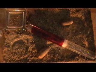 ! Vorgestern haben sie sich an das Heimchen ran gemacht und es ins RG reingezogen. Innerhalb von 2Tagen, war das Heimchen von innen hohl gefressen geworden.