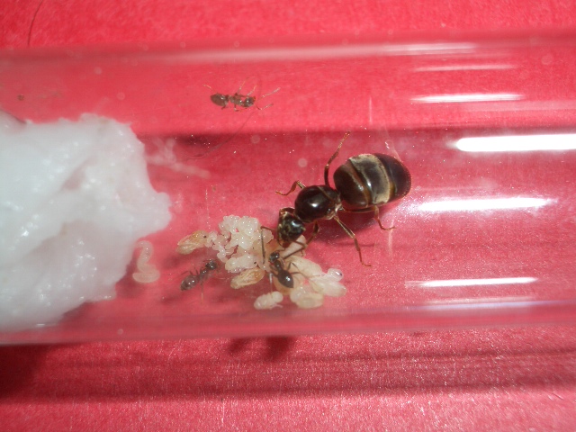Als ich am nächsten Tag nachschaute hatten die ersten Königinnen schon einen großen Haufen Eier gelegt, ich konnte nur schätzen ca. so 10Stück!