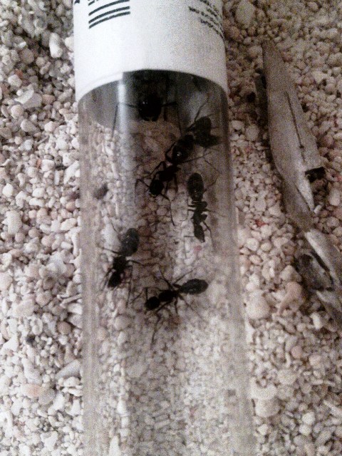 I don't have a magnifying glass... But I now have another camera to try and take some shots with. I'm starting to think the colony may be out of hibernation. Two days ago I went protein shopping for the colony because I wanted to have a decent selection of protein ready when the colony woke up. I bought Live mini crickets and wax worms, tropical fish flakes and freeze dried bloodworms. I put alittle of each in the food tray, just to see what happened. The next day one of the blood worms had been taken, this is the first time to my knowledge that the colony have eaten any fodder at all. If the colony continue to eat the insects I leave them or its confirmed the eggs are developing should I consider raising the temp in the tank?