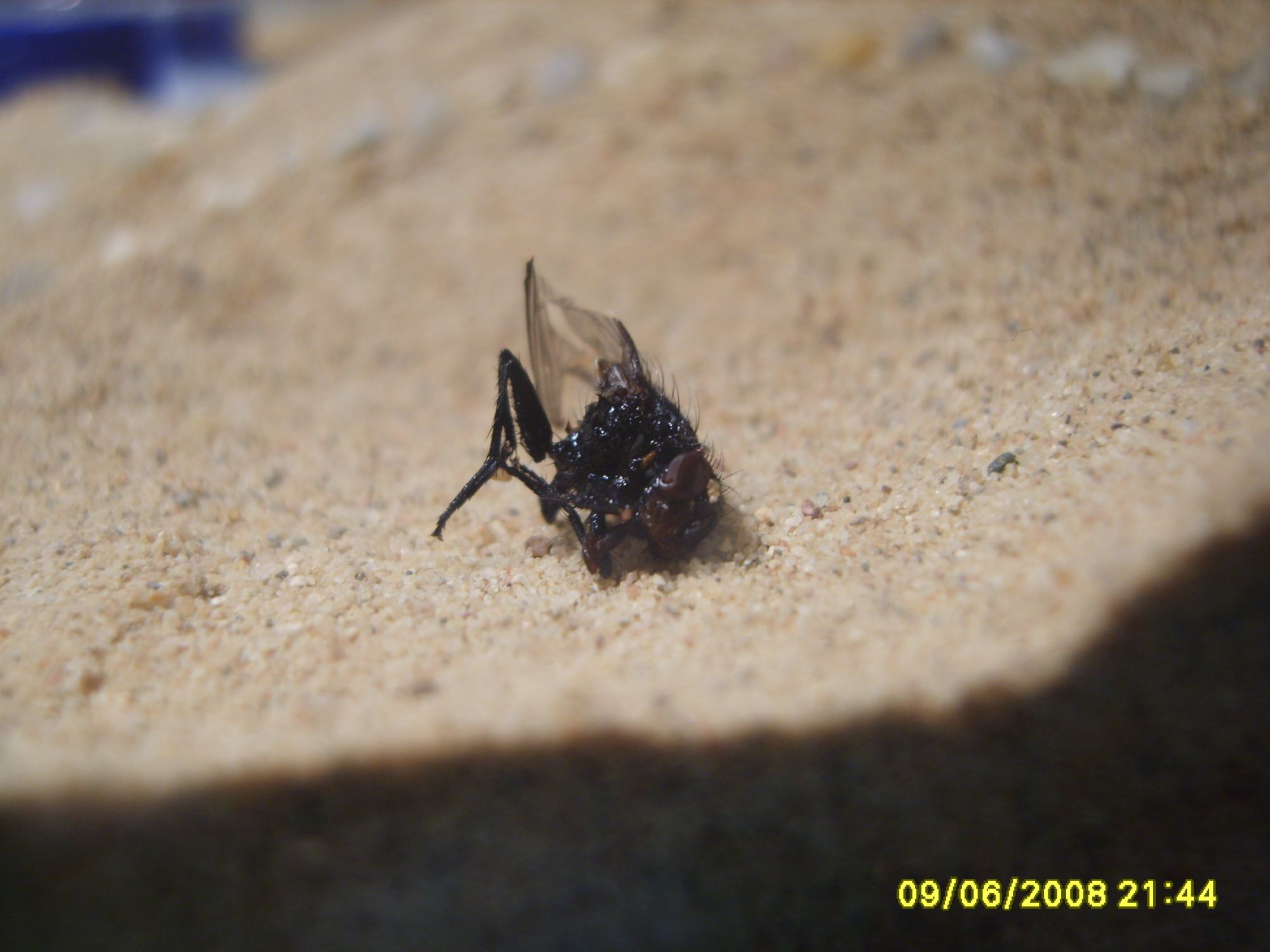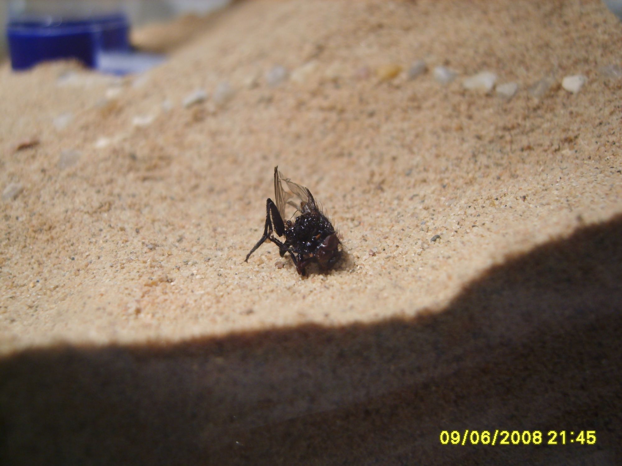 in den letzten 3 Tagen habe ich 2 Fliegen, 1 Wespe und 5 Heimchen gegeben, und alles wurde immer gern angenommen! Heißt also, dass die kleinen nen ganz schönen Appetit haben! ;)