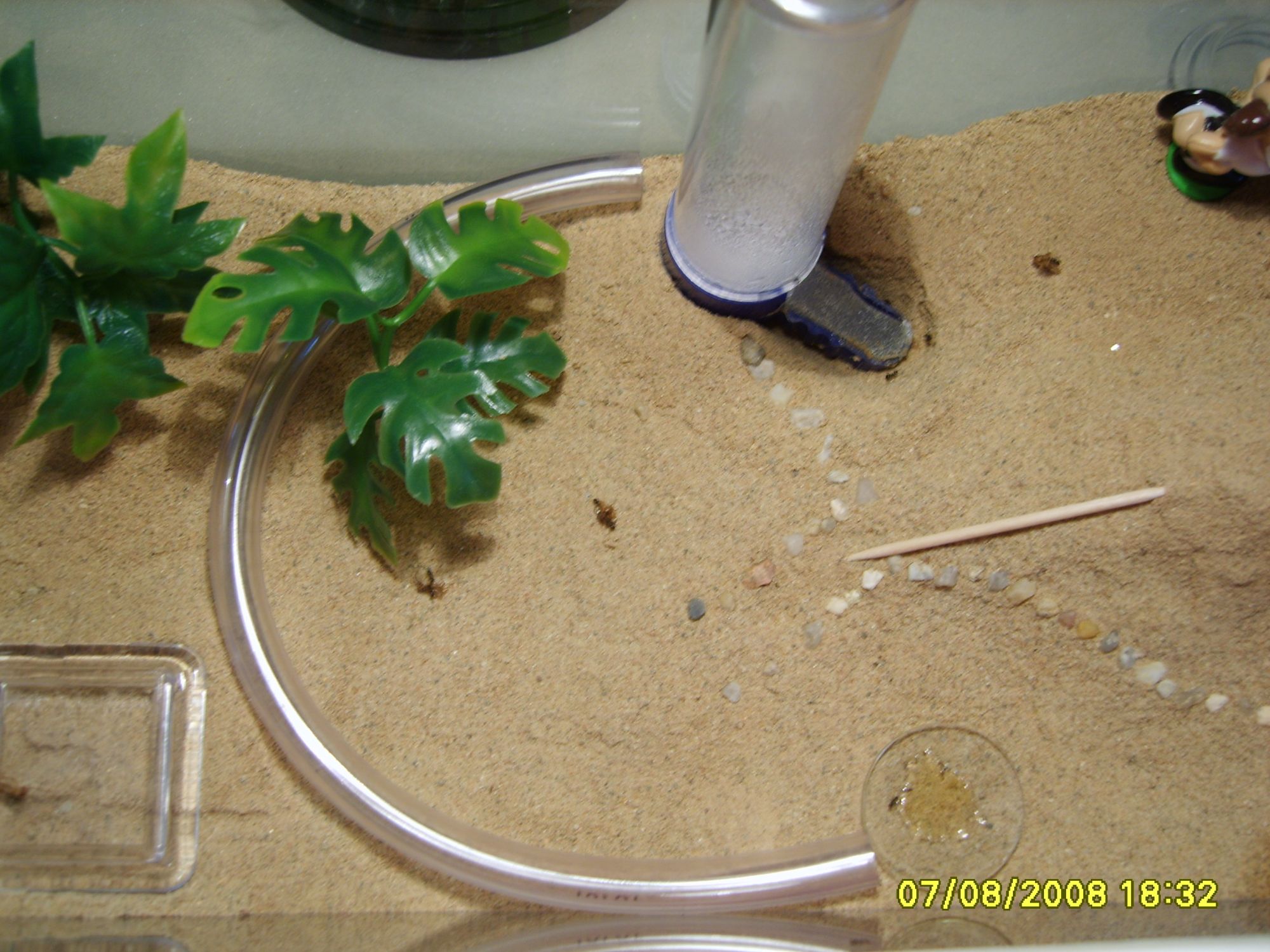 Also ich hab ihn dann gestern sauber gemacht, trocknen lassen, und heute den sand in die kammern gestrichen und die Gänge mit sand verschlossen.