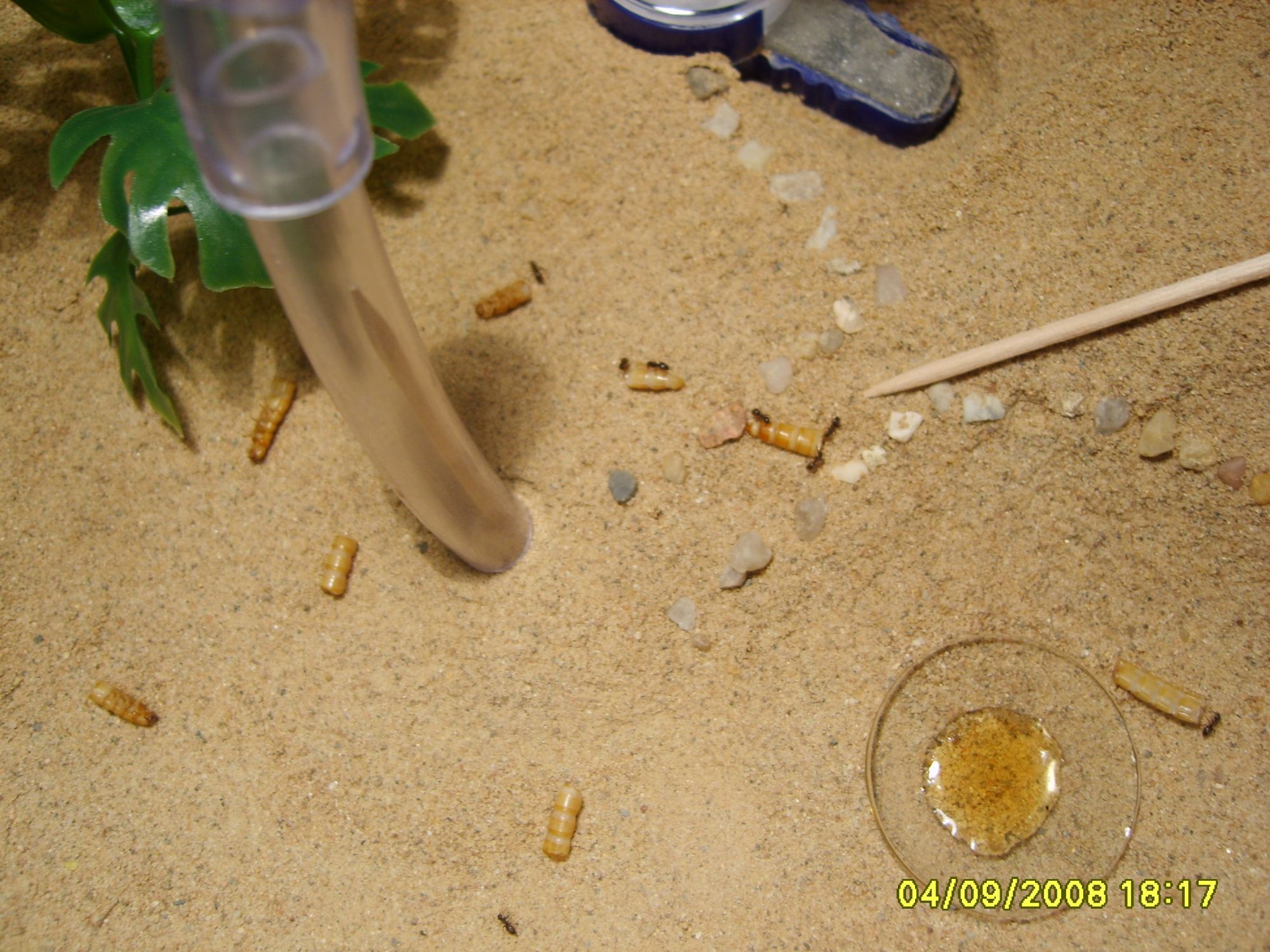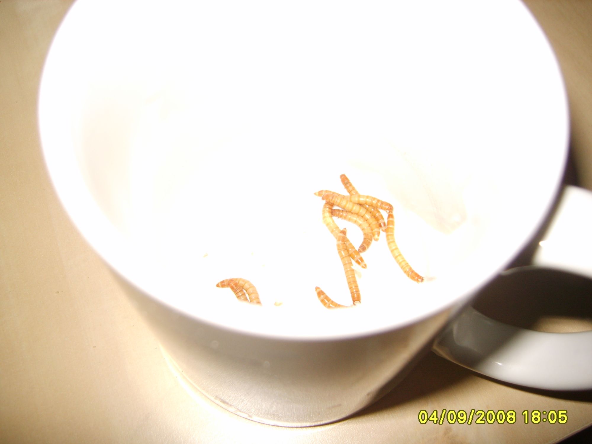 Dann hab ich heut wieder 3 Mehlwürmer verfüttert! Sind wider super angekommen!