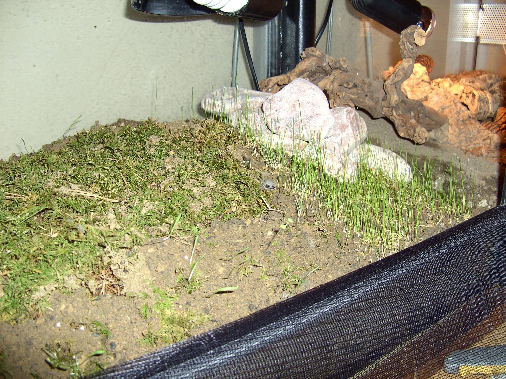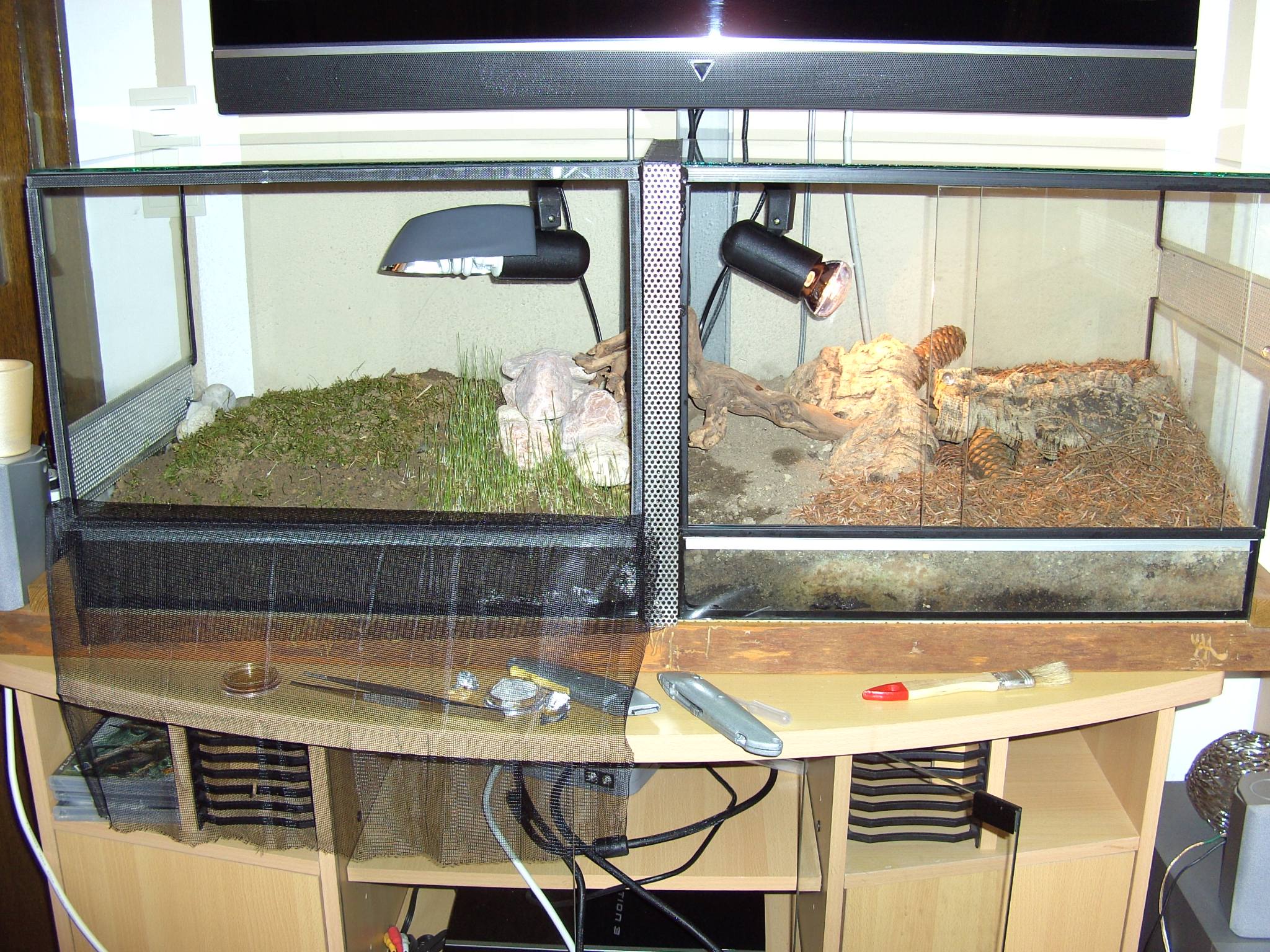 Ich habe mir ein Terrarium (Formicarium) eingerichtet mit den Maßen 110cm*40cm*40cm. Die linke Seite ein bischen feuchter mit Moos und lehmiger Erde andere seite eher relativ trocken (der Bodengrund) rechts in der ecke in der Erde morsches Holz das so ca 10cm - 15cm mit Erde ringsrum aufgefüllt ist. Zwischen der linken und rechten Seite Sind Steine vom Boden aus (einsturzsicher) Aufgebaut und bis auf 15cm mit erde aufgefüllt ringsrum.