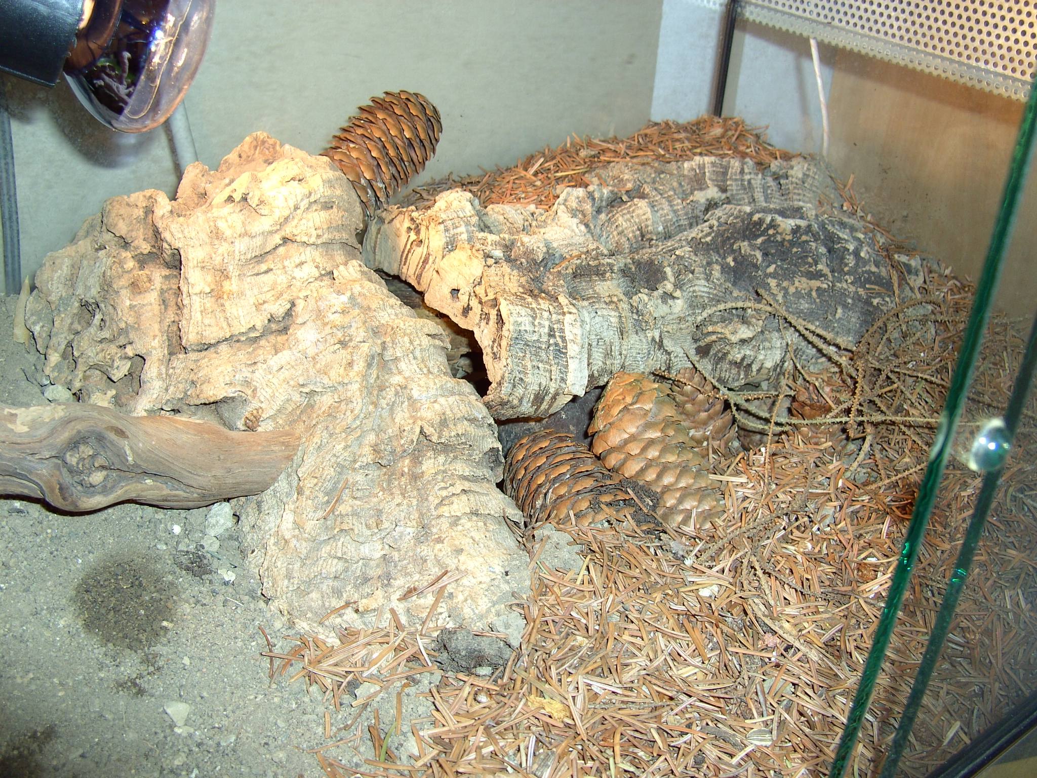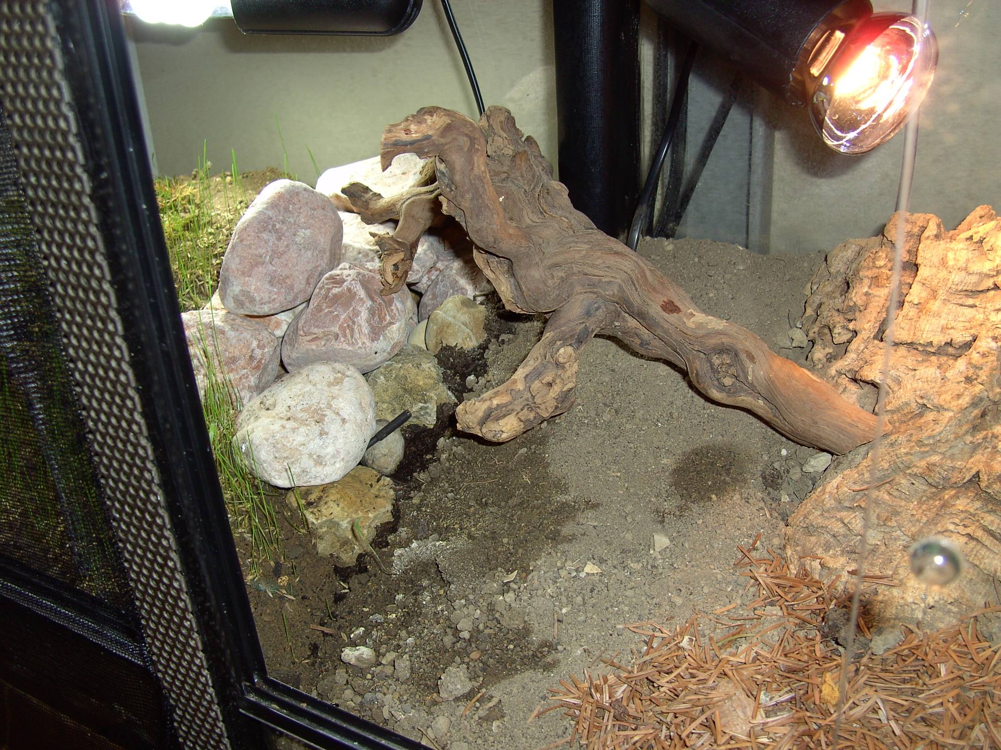 Ein 40 Watt Spot Strahler hab ich noch und eine komplett Beleuchtung mit leichten UVA UVB Anteil. Temperatur Tags zwischen 21,5 und 23,8Grad Nachts ca 21Grad.