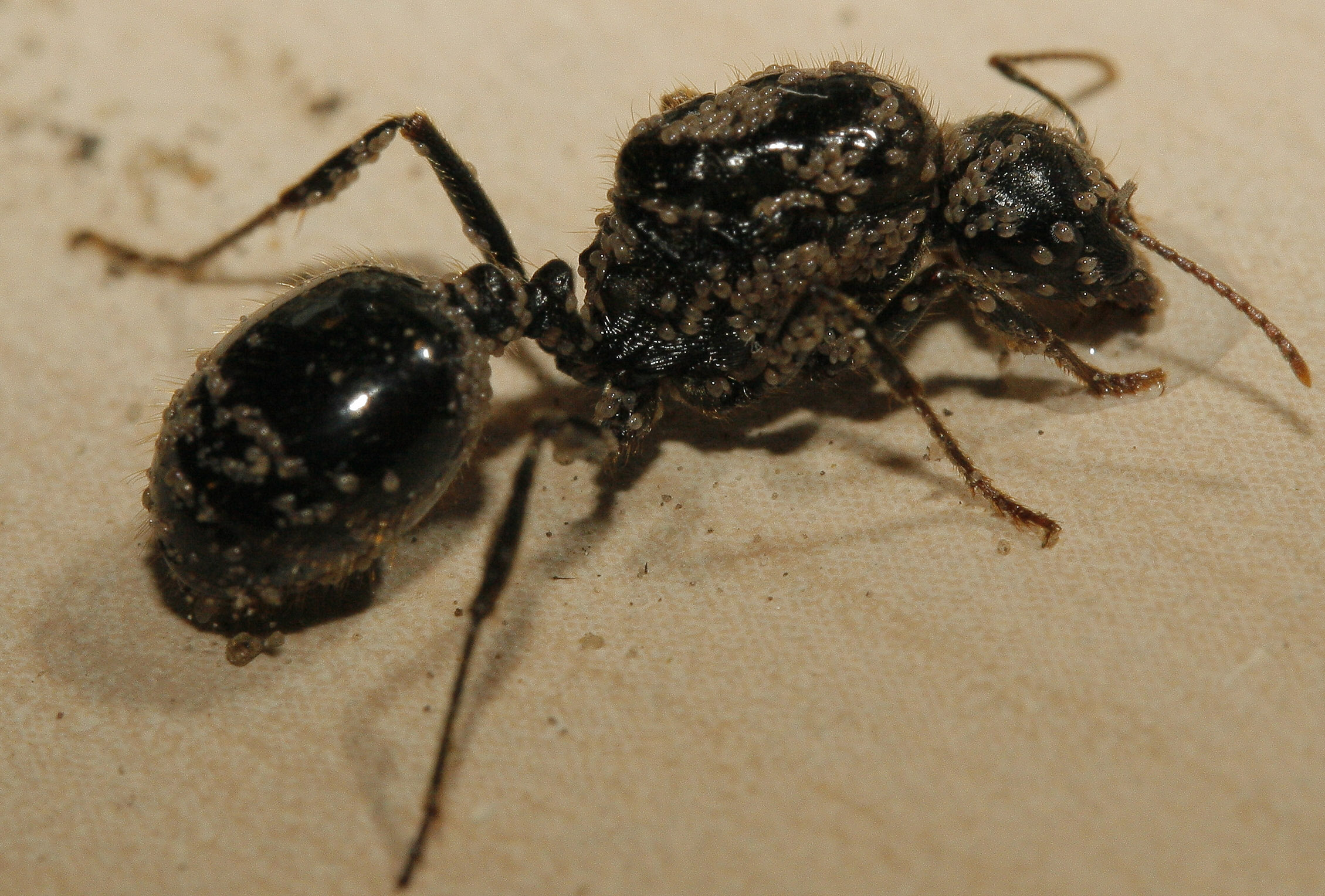 Leider mußte ich heute feststellen, dass meine Messor capitatus Queen voller Milben war, ich habe versucht sie zu entfernen, habe am Ende jedoch das einzig richtige zum Schutz meiner anderen Ameisenkolonien getan - kochendes Wasser drübergekippt