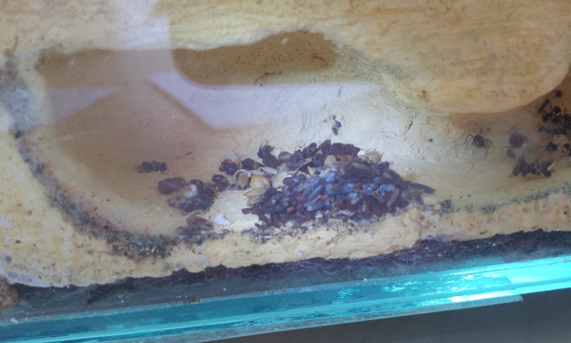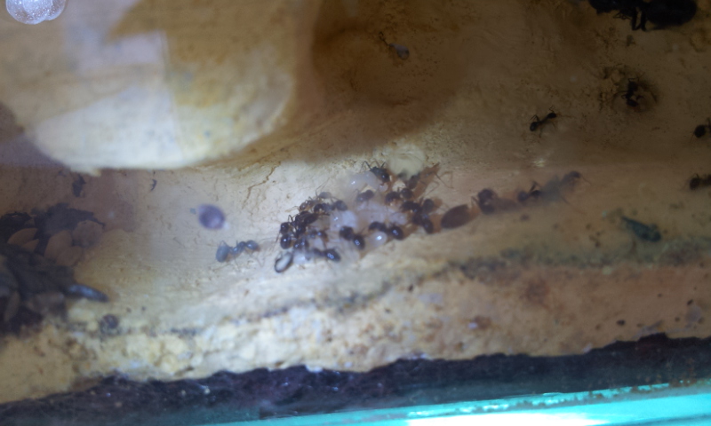 Die Ameisen verkrochen sich alle ganz nach hinten in das RG und sammelten dort auch das wenige an Brut.