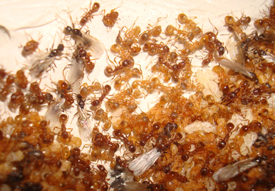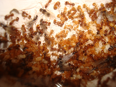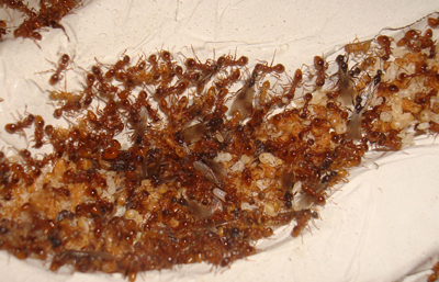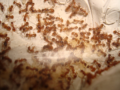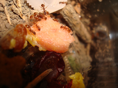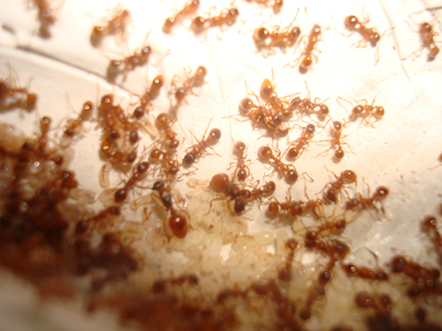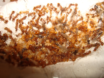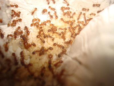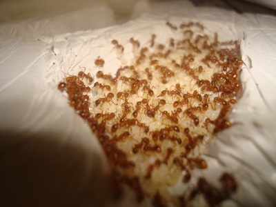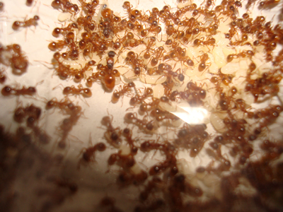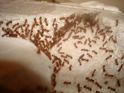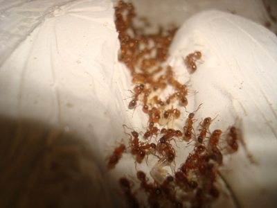 My guess is that I have close to 500 ants and believe it or not at least 10 queens, and lots of brood! The nest is about 30-40% full. I would like to fill it up a little bit more so there is no room unused to ensure a clean nest, while still allowing for the colony to grow into the living space. Anyway, thought I'd post more photos for everyone to enjoy in the next few days but here are some photos now...