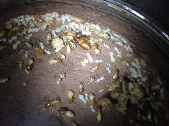 The microtermes now have 6-7 nymphs and more will soon be on the way. The kings and queens are all taking it in turns cleaning and feeding the nymphs and it will not be long before the first workers and soldiers arrive.