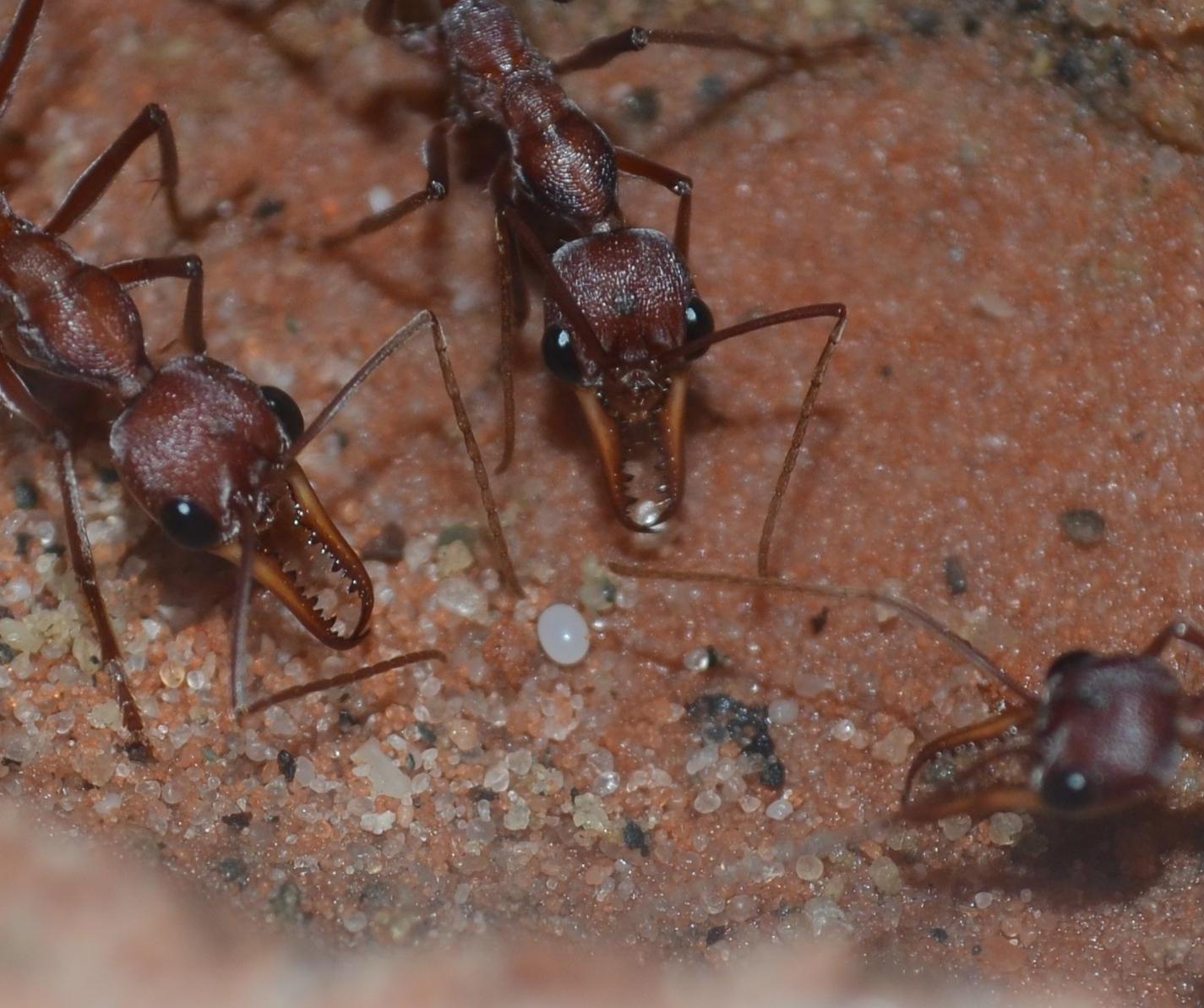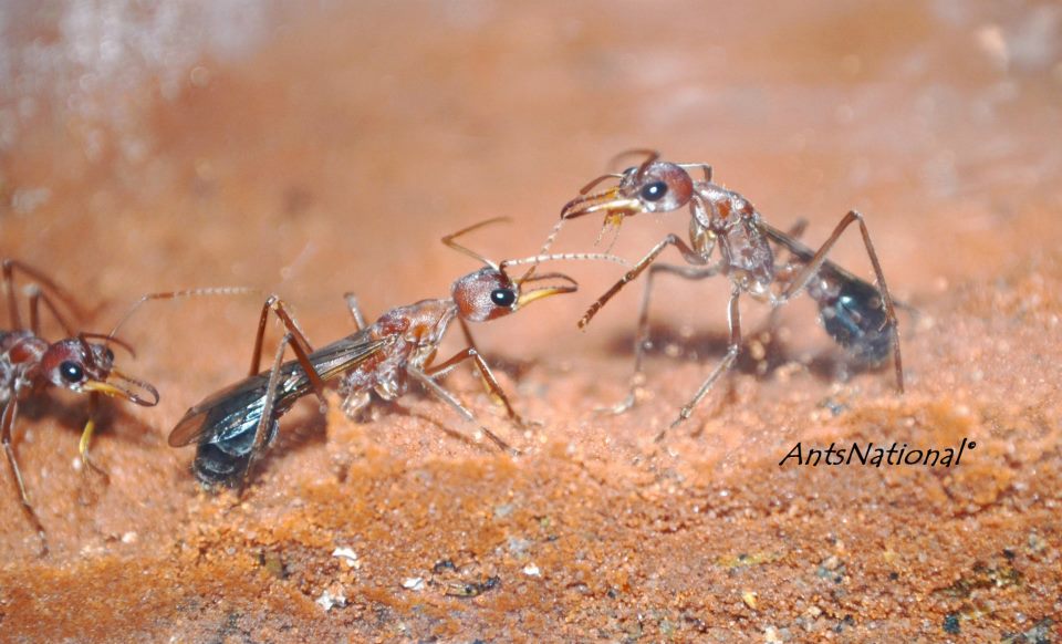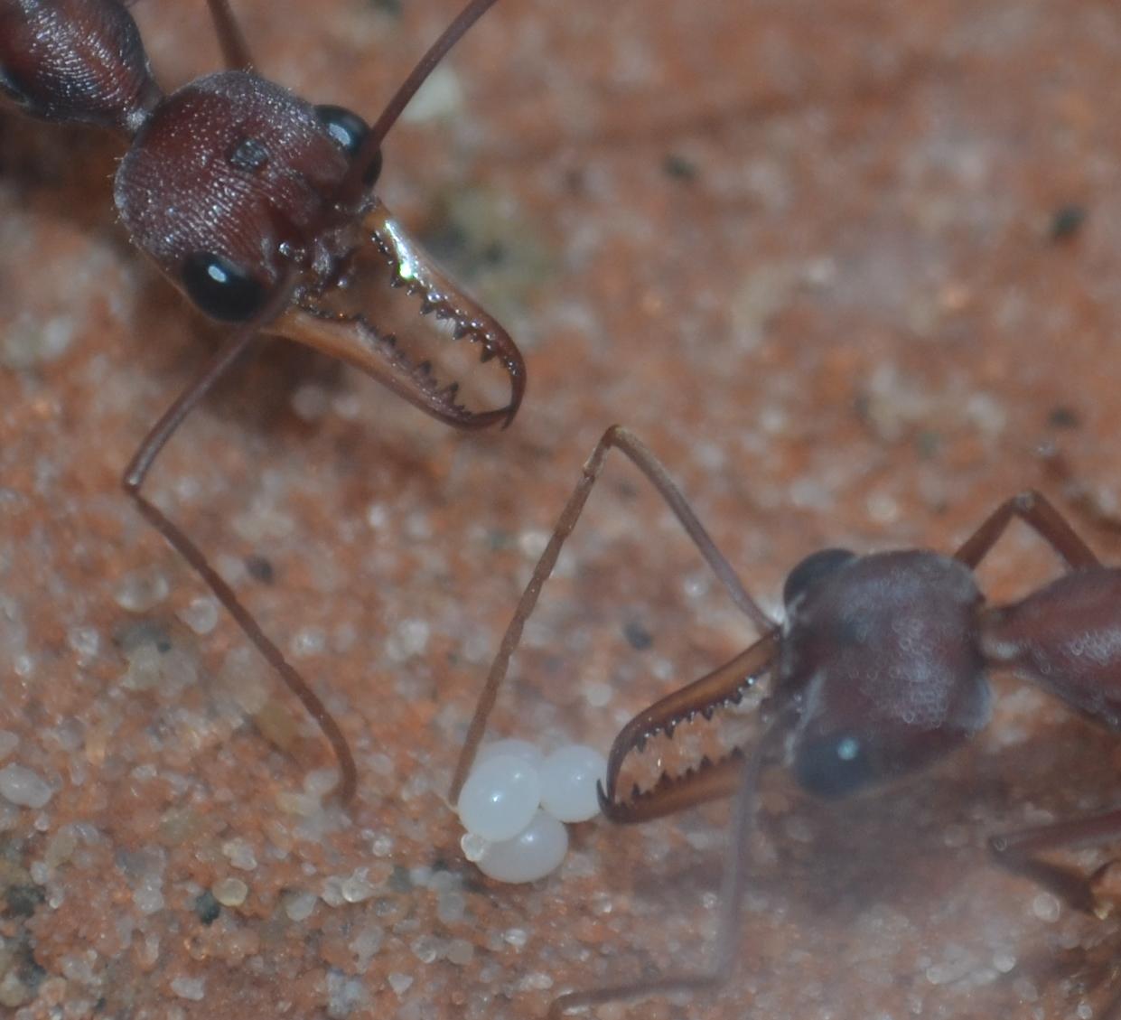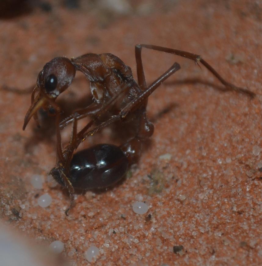 Myrmecia pavida male mating with a winged queen. At this point they were not copulating but before the picture was taken they were attached.