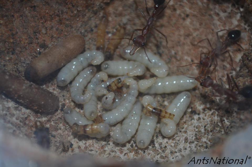 Since the queen passed a few months ago the colony has been extremely busy. All of the queen's final workers have laid eggs, which have grown and pupated into males. So far, 5/8 of the dead queen's "grandsons" have hatched. These males are spectacular! I recently received 6 princesses from a different colony & I plan to document a captive reproduction. As soon as all 8 males have hatched I will give it a shot. The workers have been busy hunting and caring for the next 12 larvae, which should pupate at any moment.