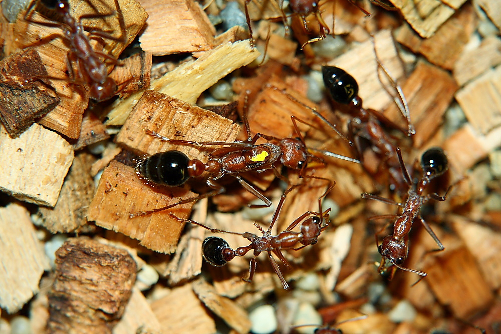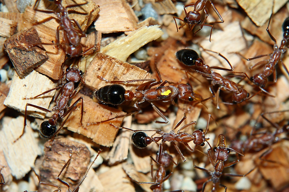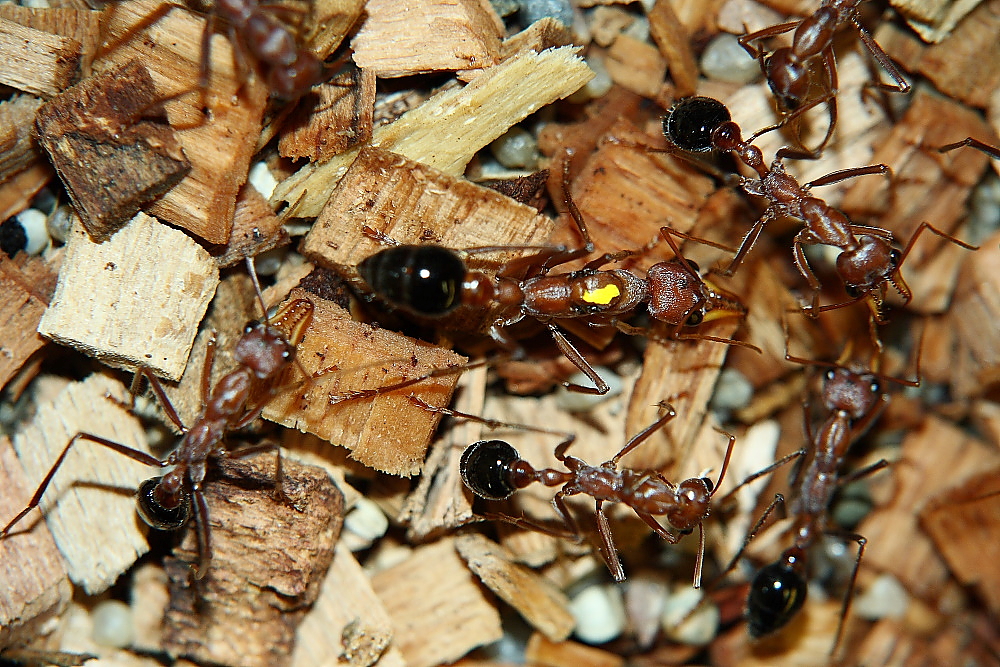 Diese Ameisen mögen es richtig warm, zur Wärmeisolierung liegt so eine Platte darunter.
