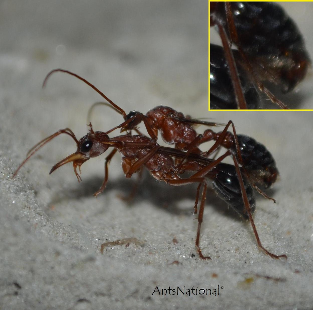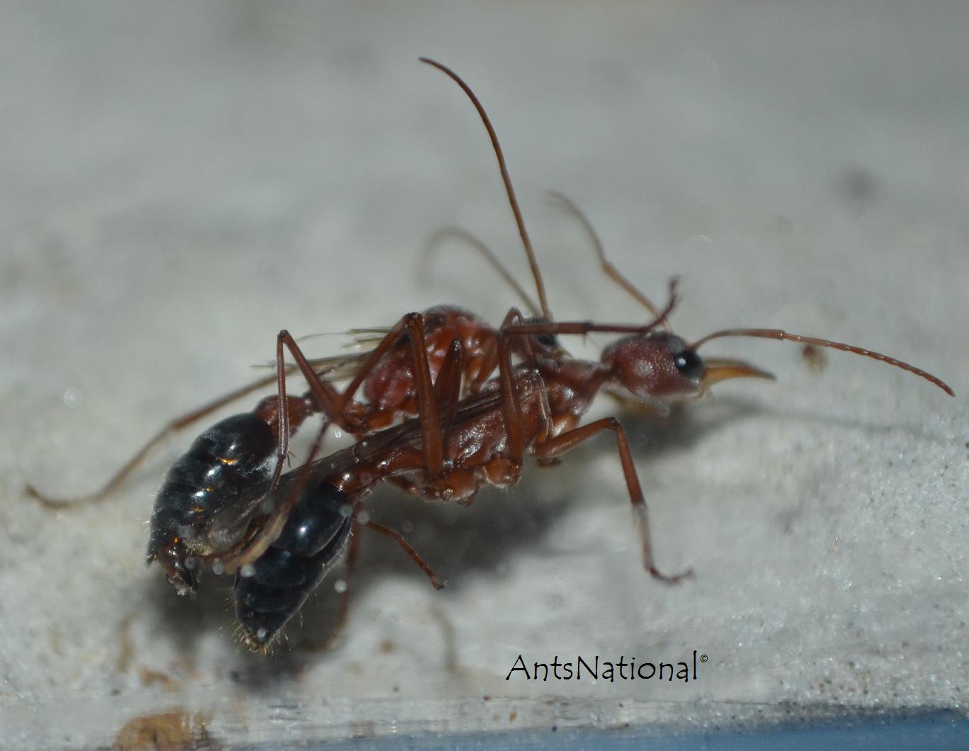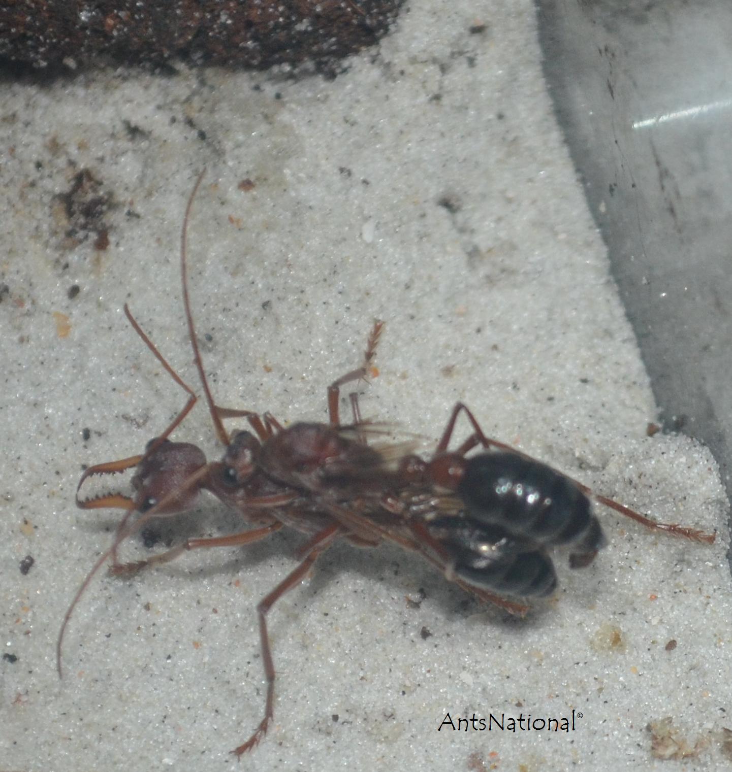 I thought it would probably be better to post a discussion on ant reproduction; in specifics to Myrmecia. I've been able to photograph a successful coupling of these ants in captivity. Early on the day of Christmas eve, it seems as though a male has succeeded in copulating with one of the princesses. I did make a video on this experience, so far I only released part 1.