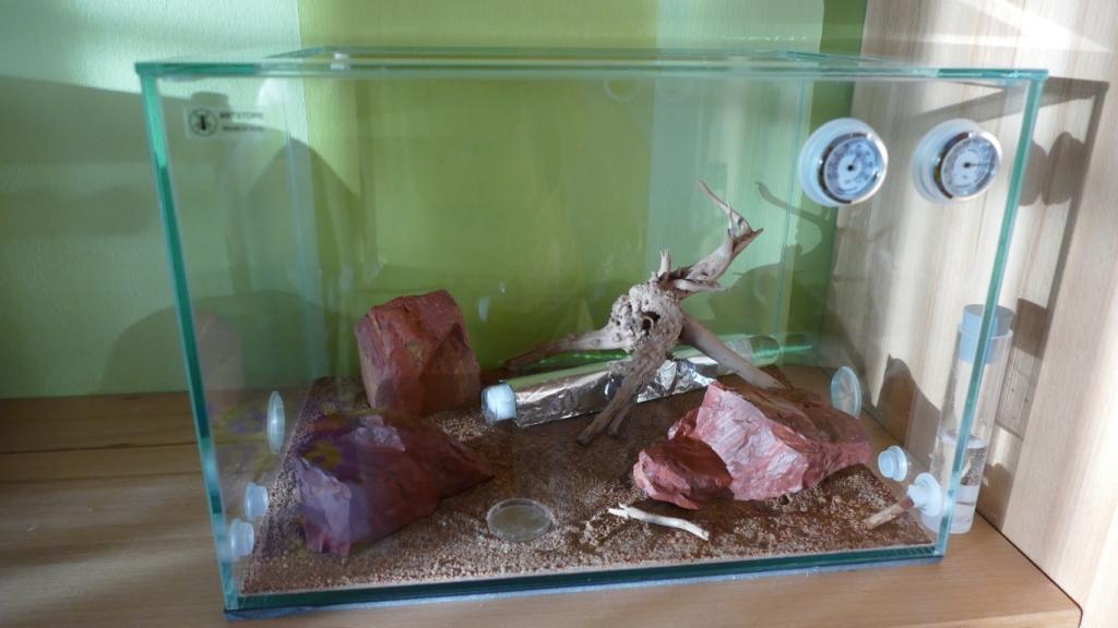 Ich habe an die Heizmatte nun noch eine Zeitschaltuhr angeschlossen um einen Tag-Nacht Rythmus zu simulieren. Bin mir nicht sicher ob das aufgrund ihrer Herkunft Sinn macht und welche Temperaturverhältnisse im Boden ihrer natürlichen Umgebung im Tagesverlauf herrschen.