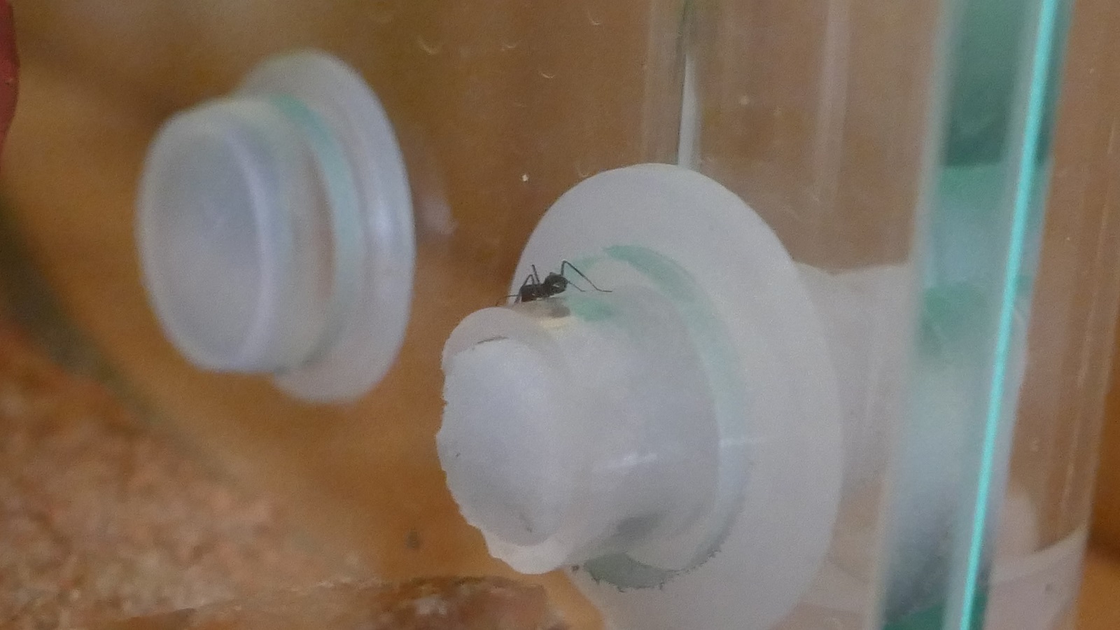 vier von fünf Drosphilla fehlen heute in der Futterschale. Ich gehe davon aus, dass diese über Nacht eingetragen wurden. Zu Beginn waren die Arbeiterinnen Tag und Nacht unterwegs, jetzt scheinen sie eher nachts zu fouragieren.