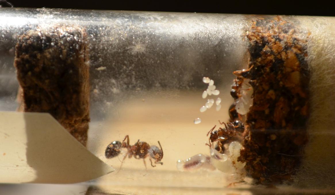 Colony B: 1 egg, 6 larvae, 2 pupae.