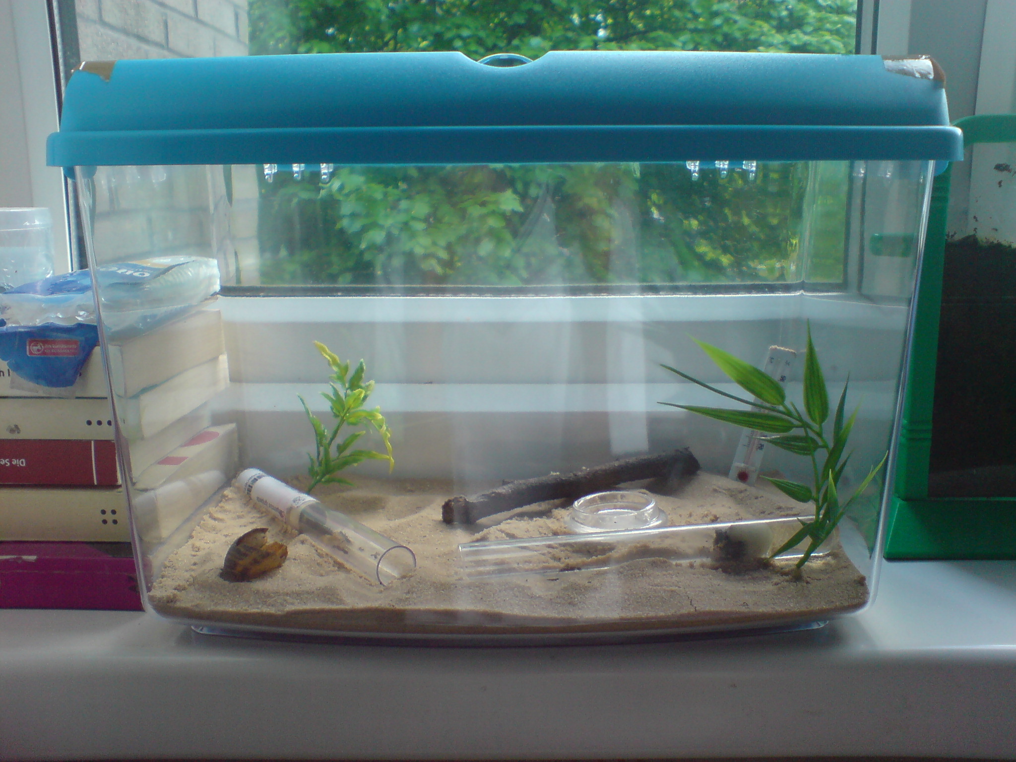 I moved my campos into their new outworld which is a plastic aquarium/ temporary pet holder but perfect for ants! Ecxept the lids they give all its slits are so big any ant could escape (proly not big species queens). So i taped them close and poked small air holes in them.