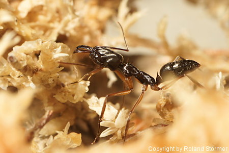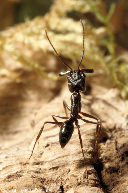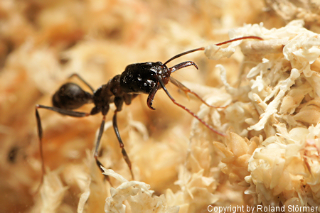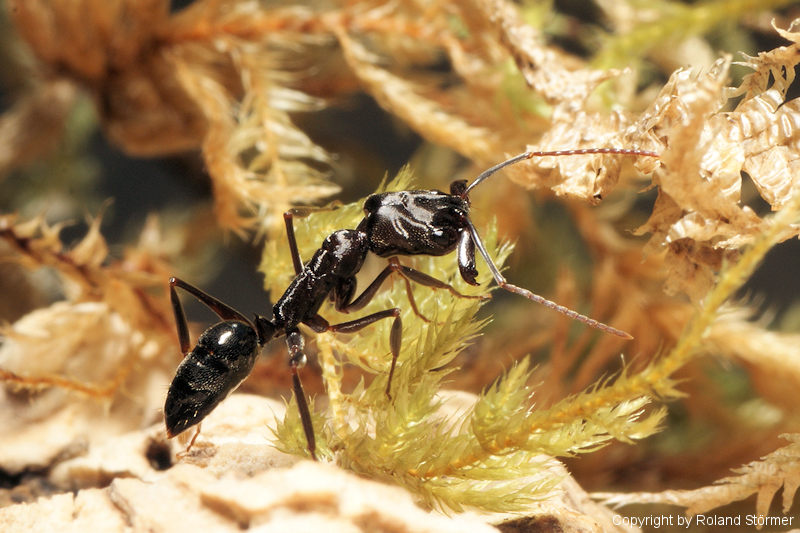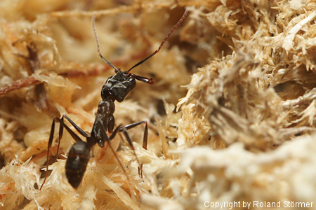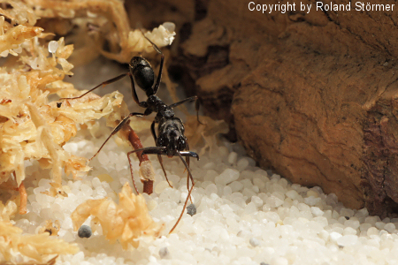 Die Odontomachus, auch bekannt als Schnappkieferameise, lebt im tropischen Regenwald bei hoher Luftfeuchtigkeit (80-90%) und warmen Temperaturen (25°C).