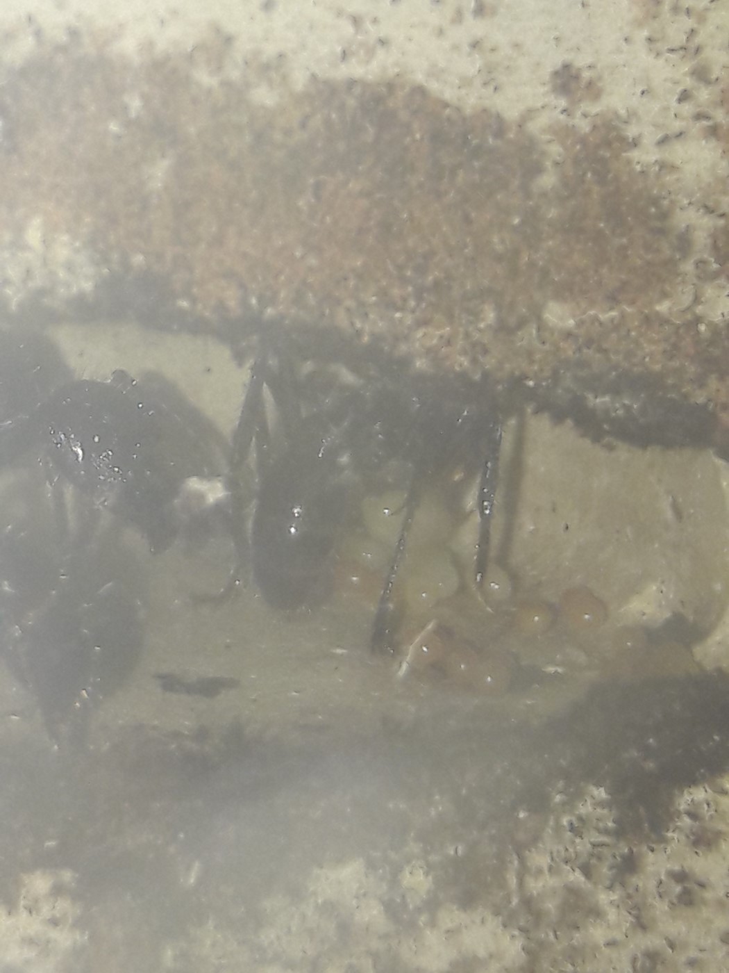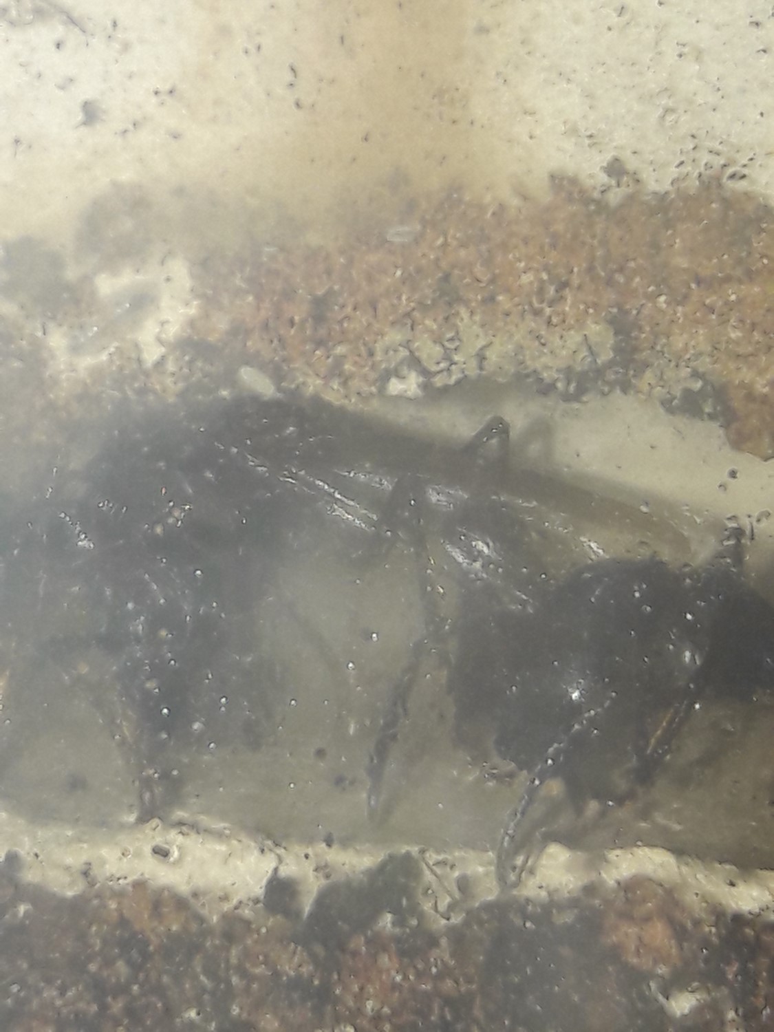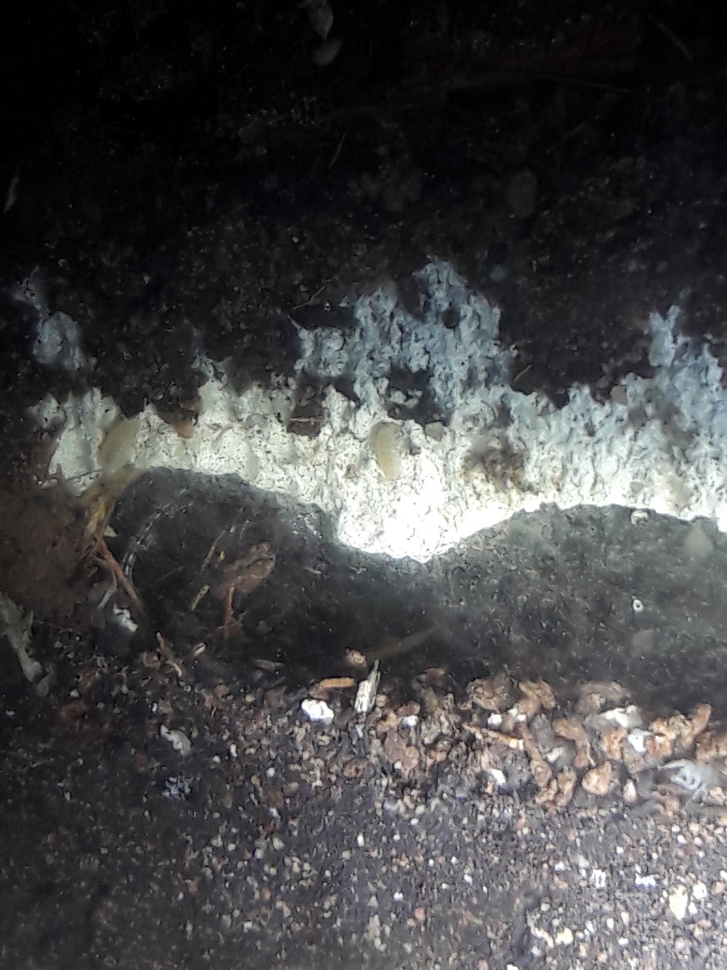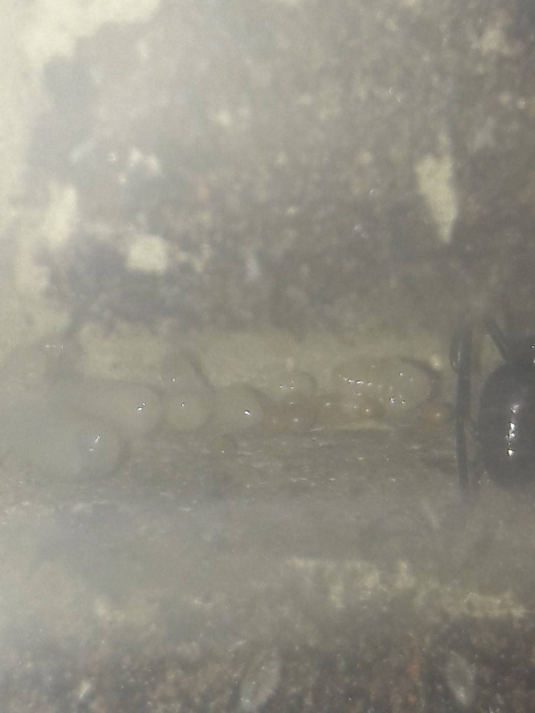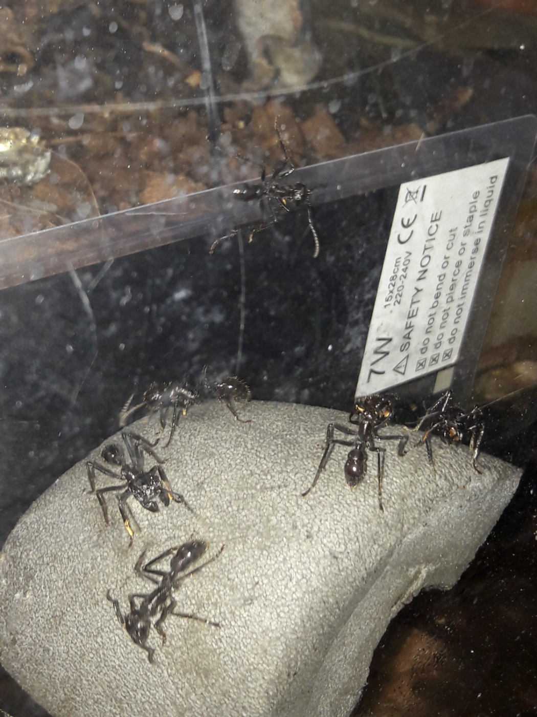 Die Anderen sitzen leider immer noch unter dem Rindenstück. Sie haben das Ytong Nest noch nicht angenommen. Ihnen habe ich eine Plastikbox übergestülpt. Gyne 4 hat keinen Zugang mehr, möchte nichts anbrennen lassen.