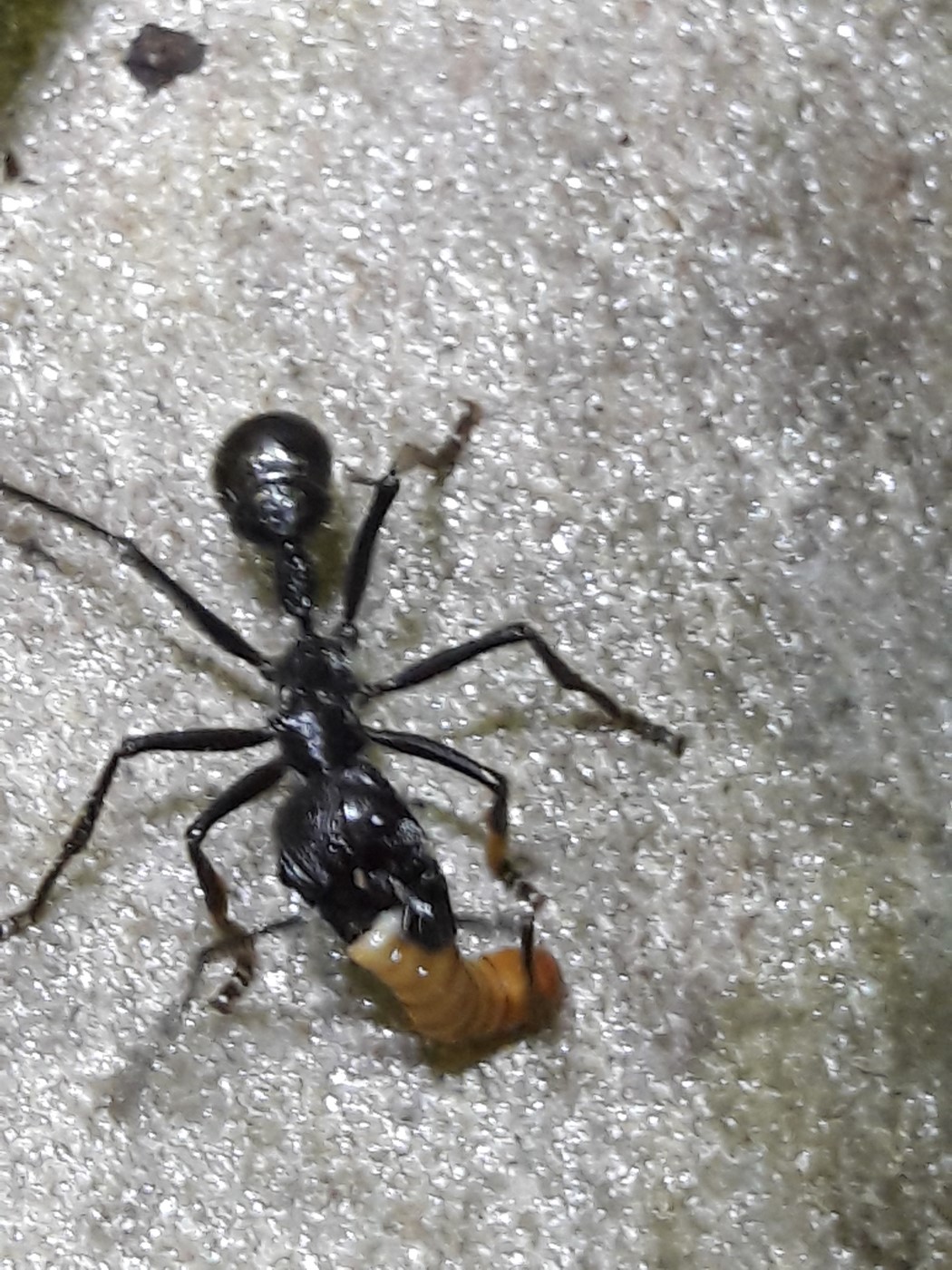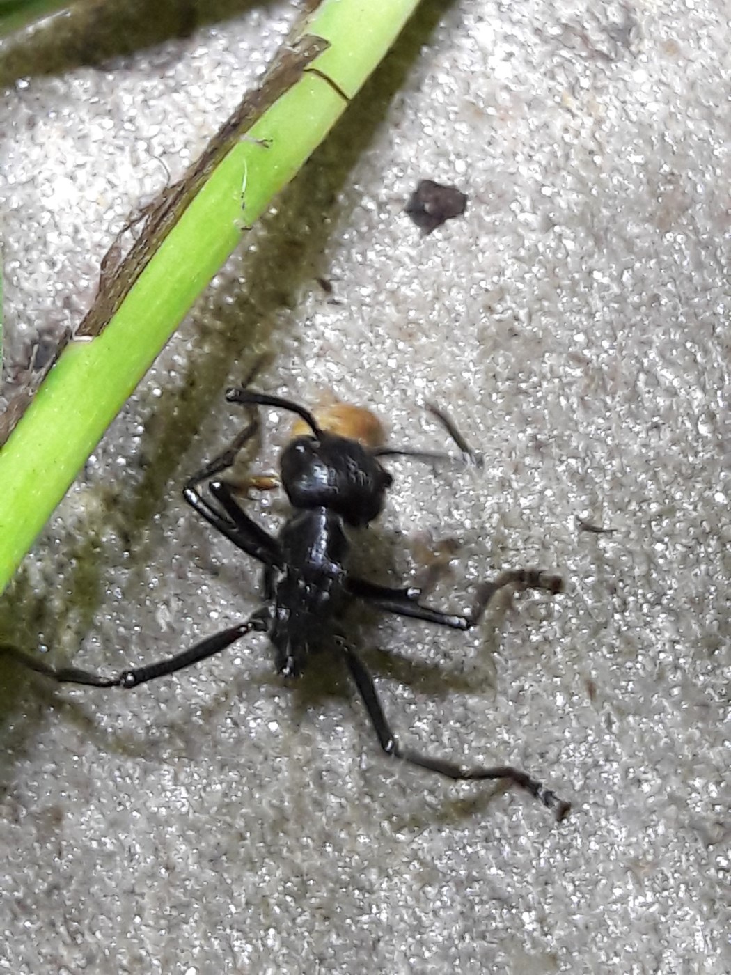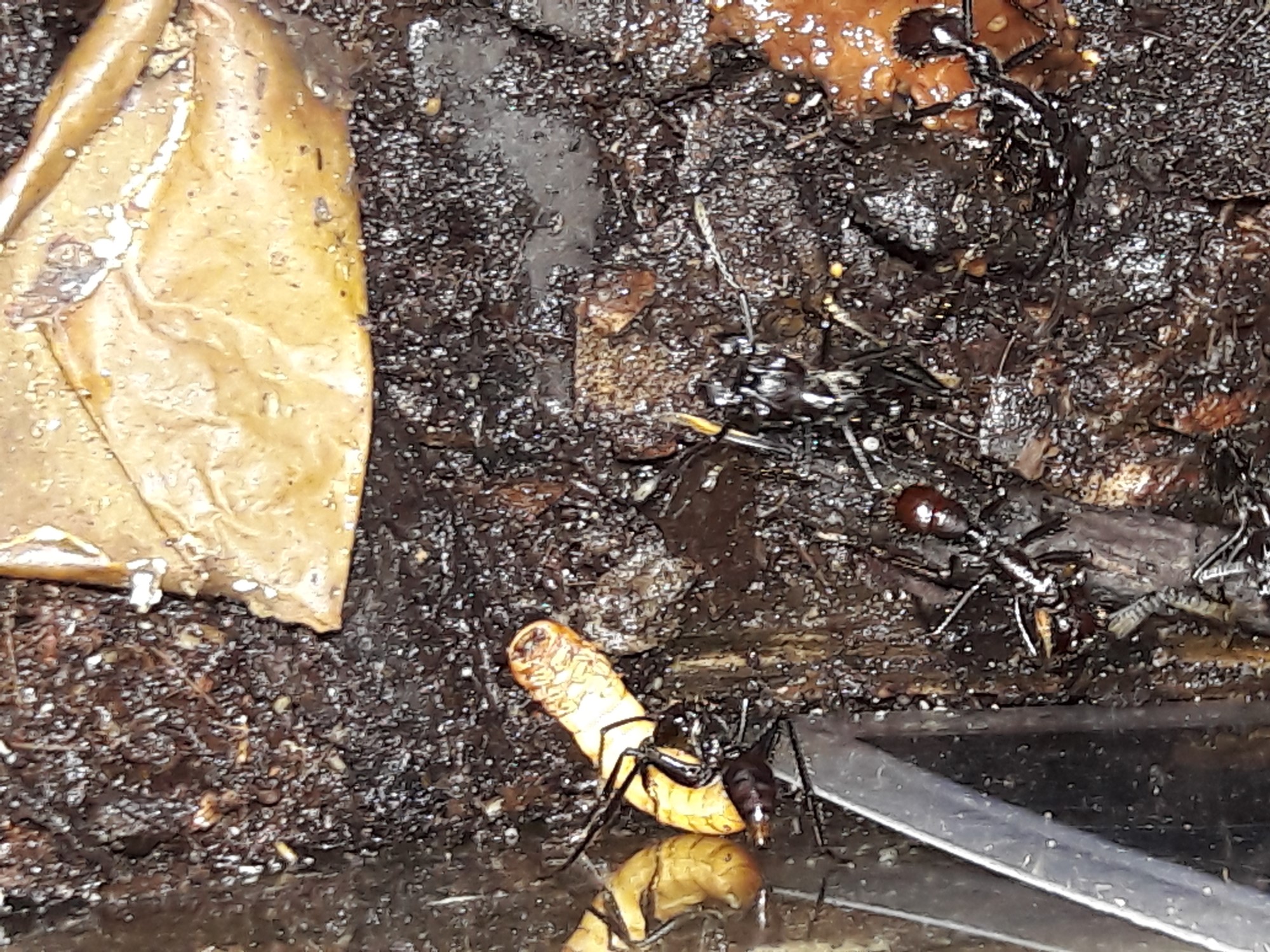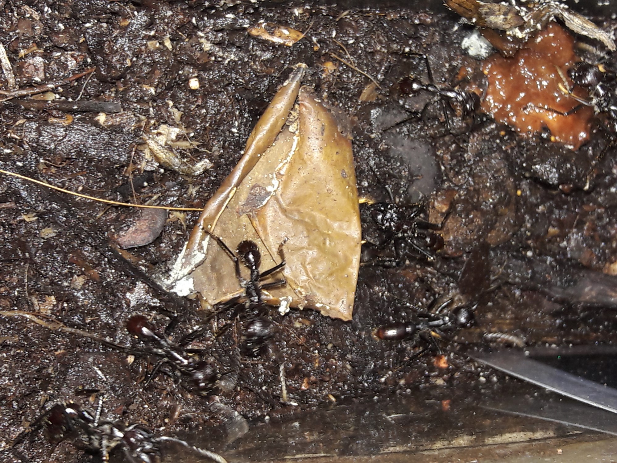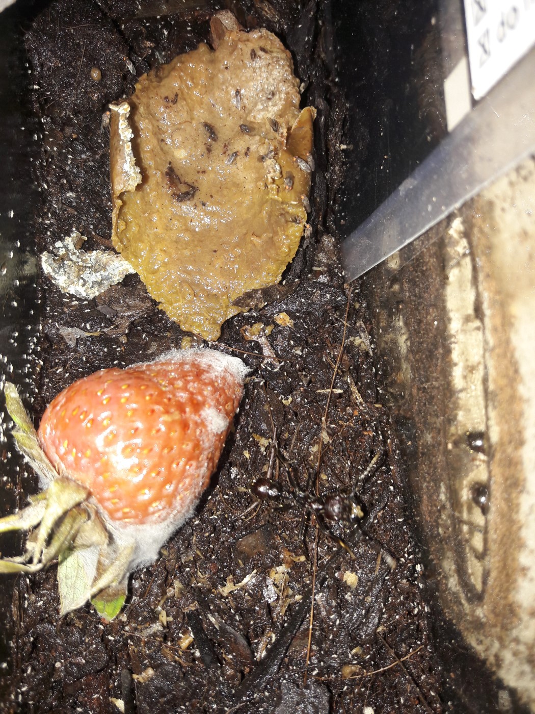 Sporadisch wird sie durch eine Arbeiterin unterstützt. Die Brutkammer der Kolonie befindet sich am Anfang des Ytong- Nestes. Sie baut am Ende ca. 40 cm davon entfernt. Die Kolonie wird mobiler, drei Arbeiterinnen im Outback ist keine Seltenheit mehr. Faulige Erdbeeren sind der Hit, da lässt man schon mal das beliebte Zuckerwasser stehen.