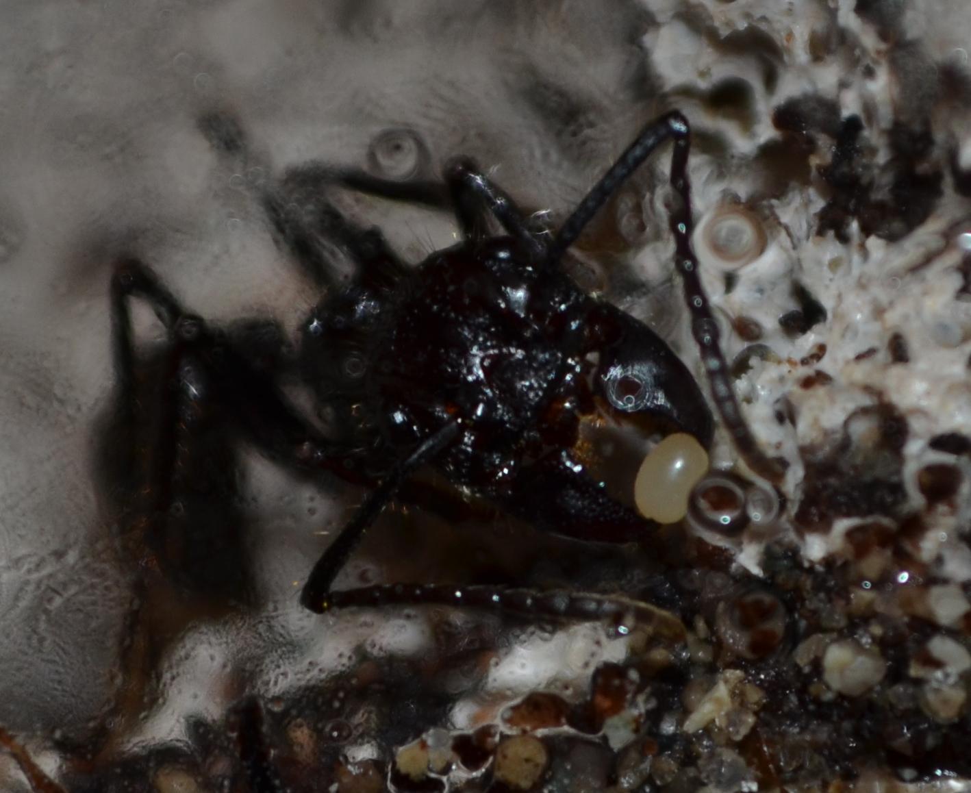 Anywho, I keep them in one of my customized nests and the queen has laid her first egg today. Humidity and temperature are both quite high during the day, and at night the temperature cools down (and the daytime light is off). They are kept in a 40gal aquarium with 3 packed-down inches of pre-boiled coco-fibre, peat and sand. Here is a picture of the egg, I will update when the colony reaches the next stage of development.