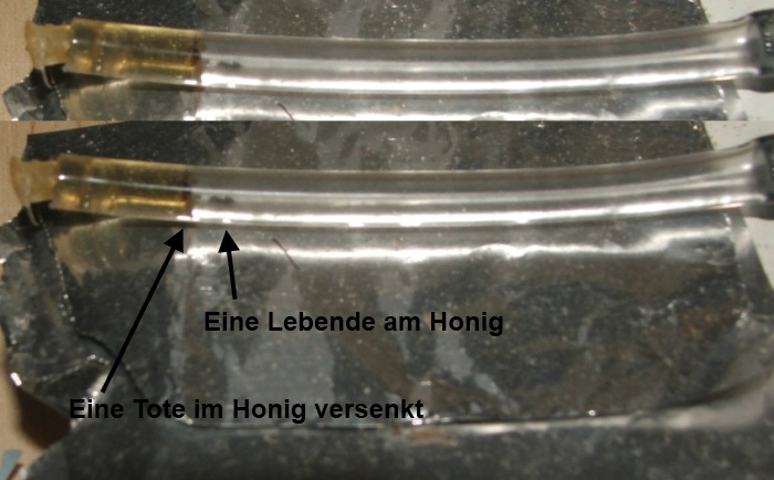 Nunja, drinnen angekommen, gab es dann gleich ein Röhrchen mit Honig in die Arena -