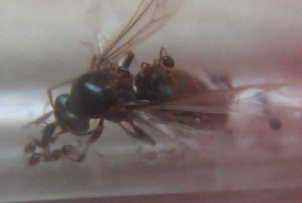 then the queen came in and BOOM! the head+thorax were separated from the abdomen. Good job!
