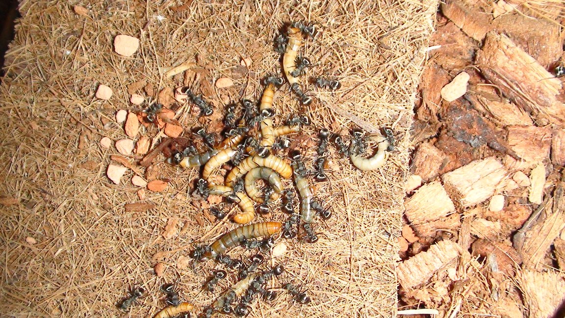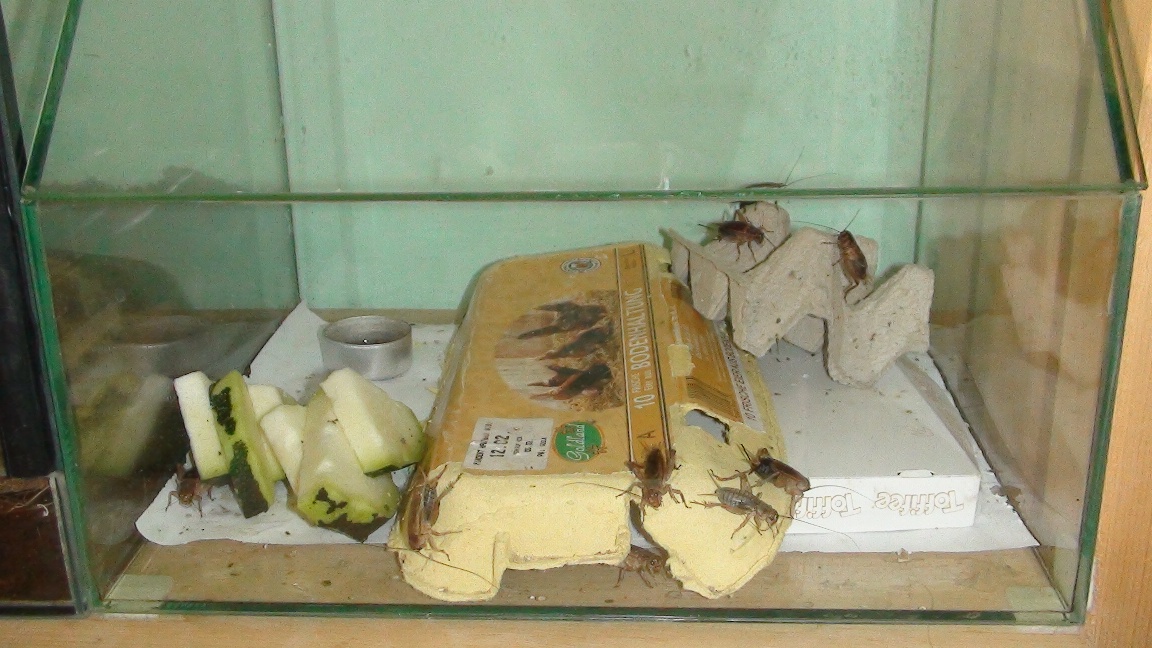 Als Futter gebe ich ihnen Grillen und Maden. Beides wir toll angenommen.