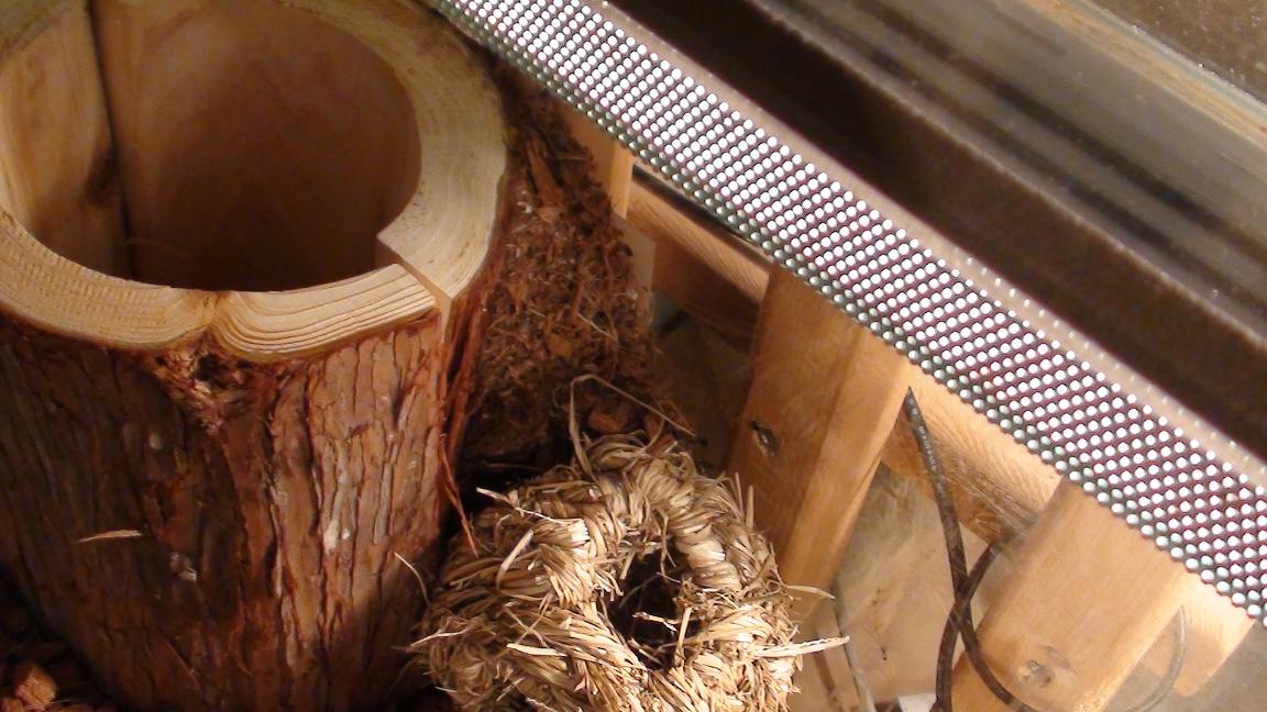 Nach etwa einer Stunde haben sie in den Baumstamm angefangen zu weben.