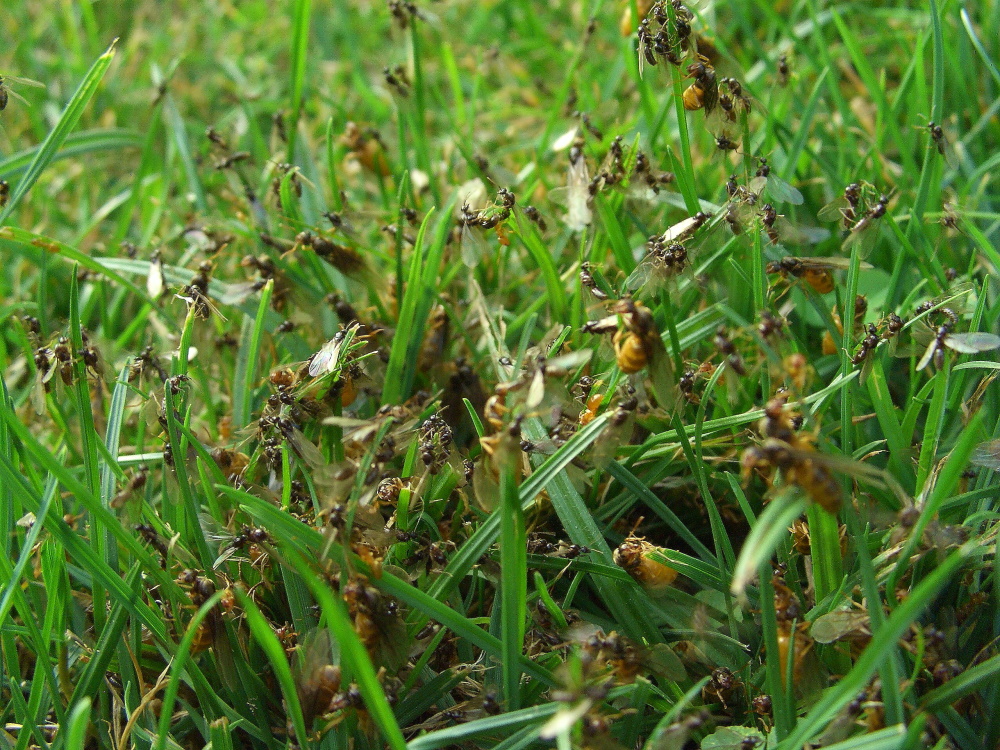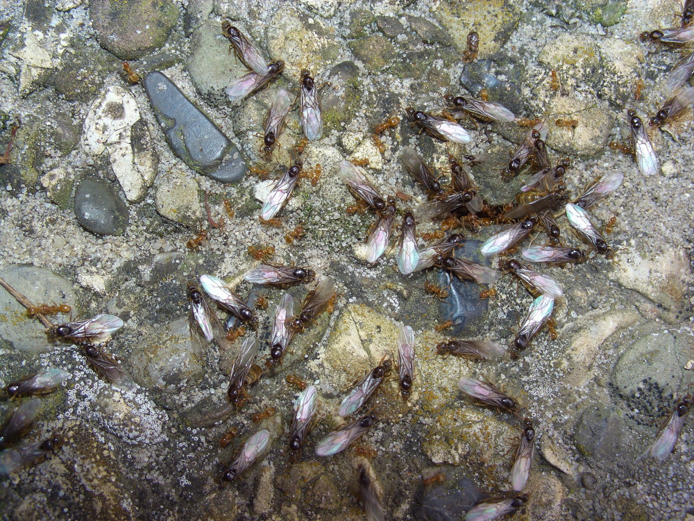 Tausende von Jungköniginnen und Männchen von umliegenden Nestern sind dabei gleichzeitig abzufliegen, um in der Luft nach einen Partner zu suchen.