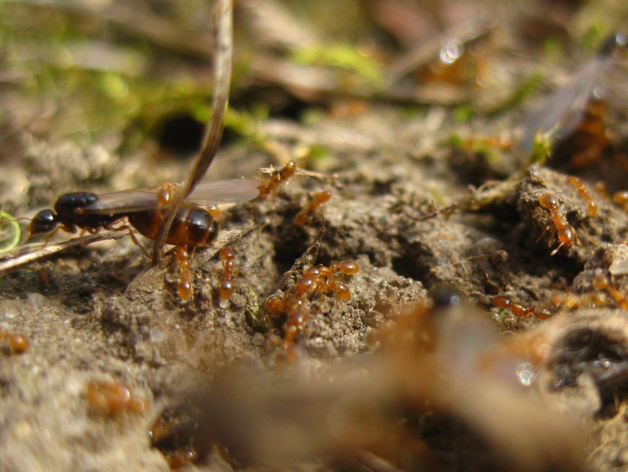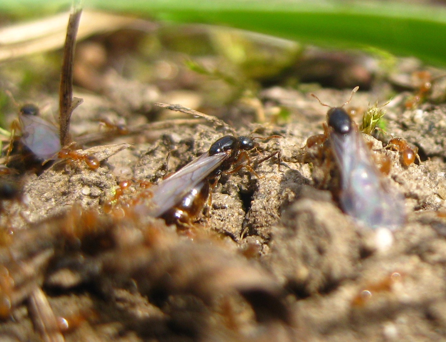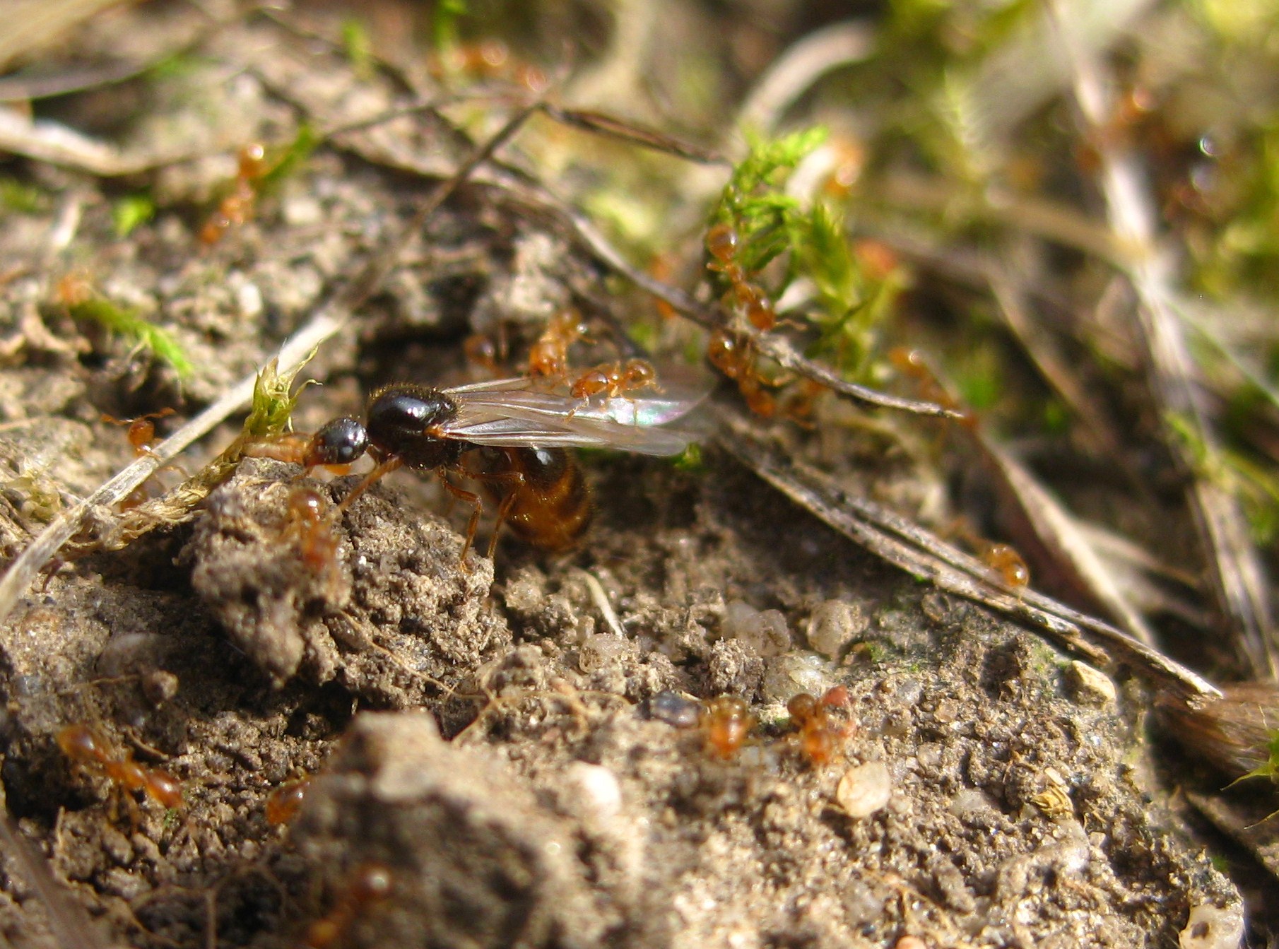 , heute mittag hab ich, bei Sonnenschein und geschätzten 20°C, noch eine Solenopsis fugax Kolonie beim Schwarmflug beobachten können. Die Kolonie ist am Damm des RMD-Kanal bei Kelheim, direkt vor meiner Haustür zuhause.
