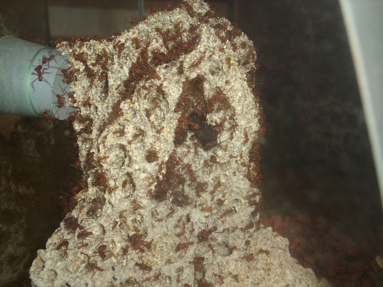 Ja ! was soll ich sagen. Alles läuft cool und meine Attas Bauen fleißig. Schade nur das jetzt die Blätter langsam aber sicher zur neige gehen. Aber schon O.K ich bin ja vorbereitet :D. Ja sonst gibt es eigentlich nicht viel mehr zu sagen. Ausser das ich schöne Bilder ahbe von meiner Atta Kolonie, wo sich die Königin in ihren Bau versteckt, aber zur Zeit hält sie sich draußen auf, was auch gut so ist :D. Na ja, hier ein paar Bildchen ;).