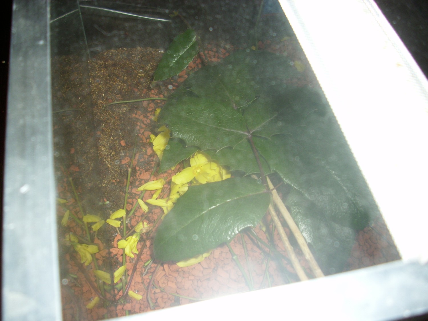 Eine weile ist es nun her, das ich hier mein letzten Statement abgeben habe. Meine Attas wachsen gut, aber langsam. Ich denke das wird sich jetzt ändern, da es jetzt bald wieder frisches Grün gibt. Ich habe ihnen die ganze Winterzeit über die Stechpalme Alaska " Ilex aquifolium und Mahonia aquifolium angeboten. Diese Zwei Pflanzenarten sind die ganze Zeit grün, ob Frost oder Schnee, diese beiden Arten haben immer grüne Blätter im Gegensatz zu den Brombeeren hier.