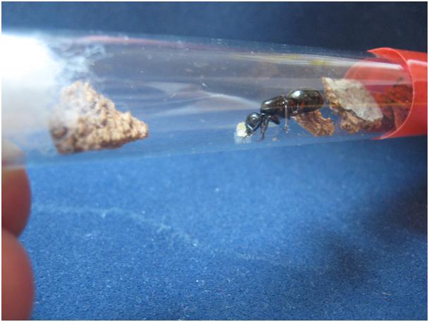 Die vermilbte herculeanus Gyne wurde von mir, in ein trockenes Reagenzglas umgesiedelt.
