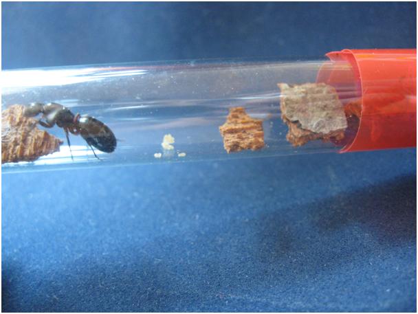 Also nochmal ein Reagenzglas bereit gestellt, Kolonie umgezogen, mittlerweile war die erste Arbeiterin geschlüpft.