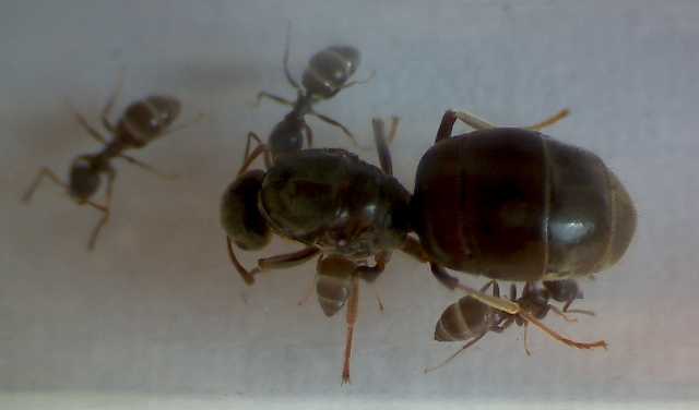 Es bleibt, wie fast immer, bei Lasius cf. niger. Selbst wenn es sich um eine andere, ähnliche Art handelt, dürfte das in der Haltung nur geringe Unterschiede haben. Man merkt es ja auch mit der Zeit, was die Ameisen gerne mögen; ob trocken oder feucht... Für eine sehr sichere Bestimmung müsstest Du z.B. Herrn Seifert ein paar tote Tiere zuschicken - wenn er sie denn für Dich bestimmt. Der hat oft besseres zu tun