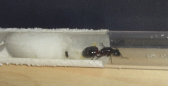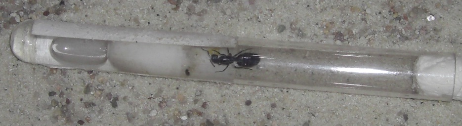 Ameise 2 zeigt Sie bon der Seite. Leider ist da noch ein Aufkleber auf dem Reagenzglas im weg.