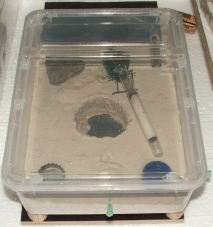 Ach ja, über die Kanülen kann man kinderleicht Zuckerwasser zuführen (später, wenn die Arene deutlich gut befouragiert wird und auch gut den Gipsboden von außen befeuchten!