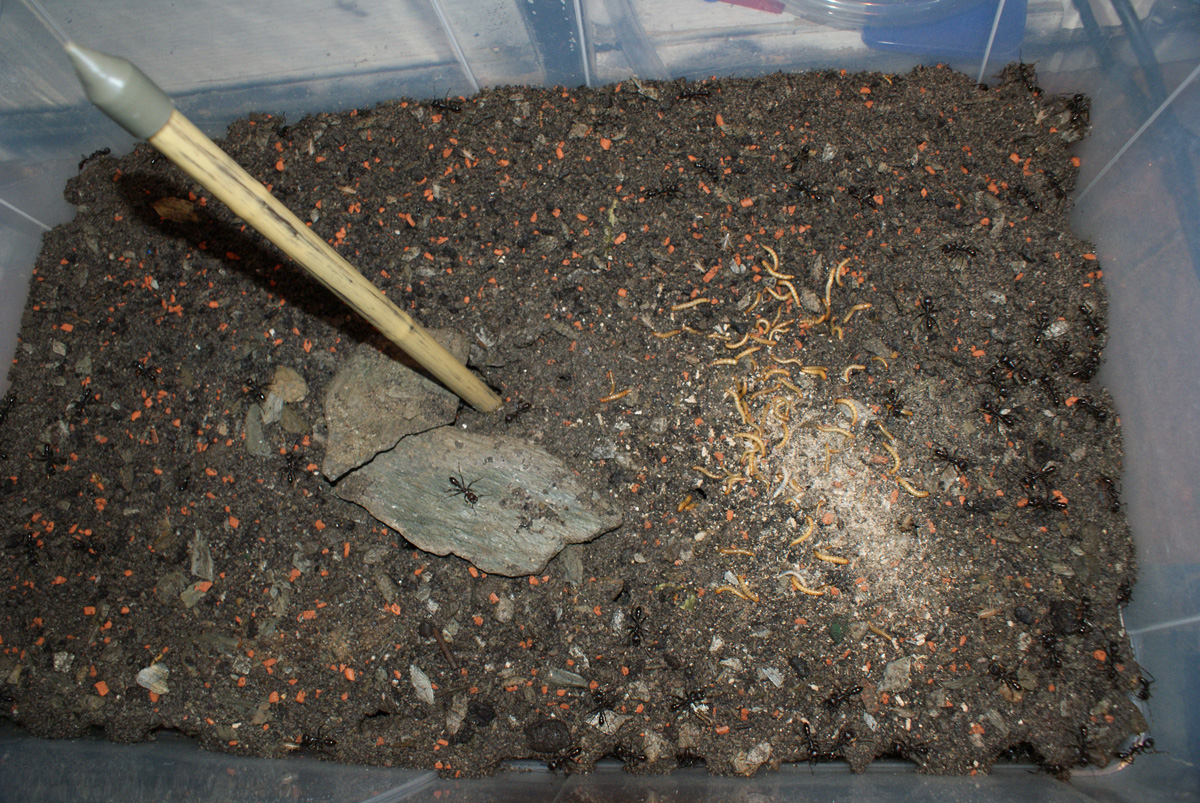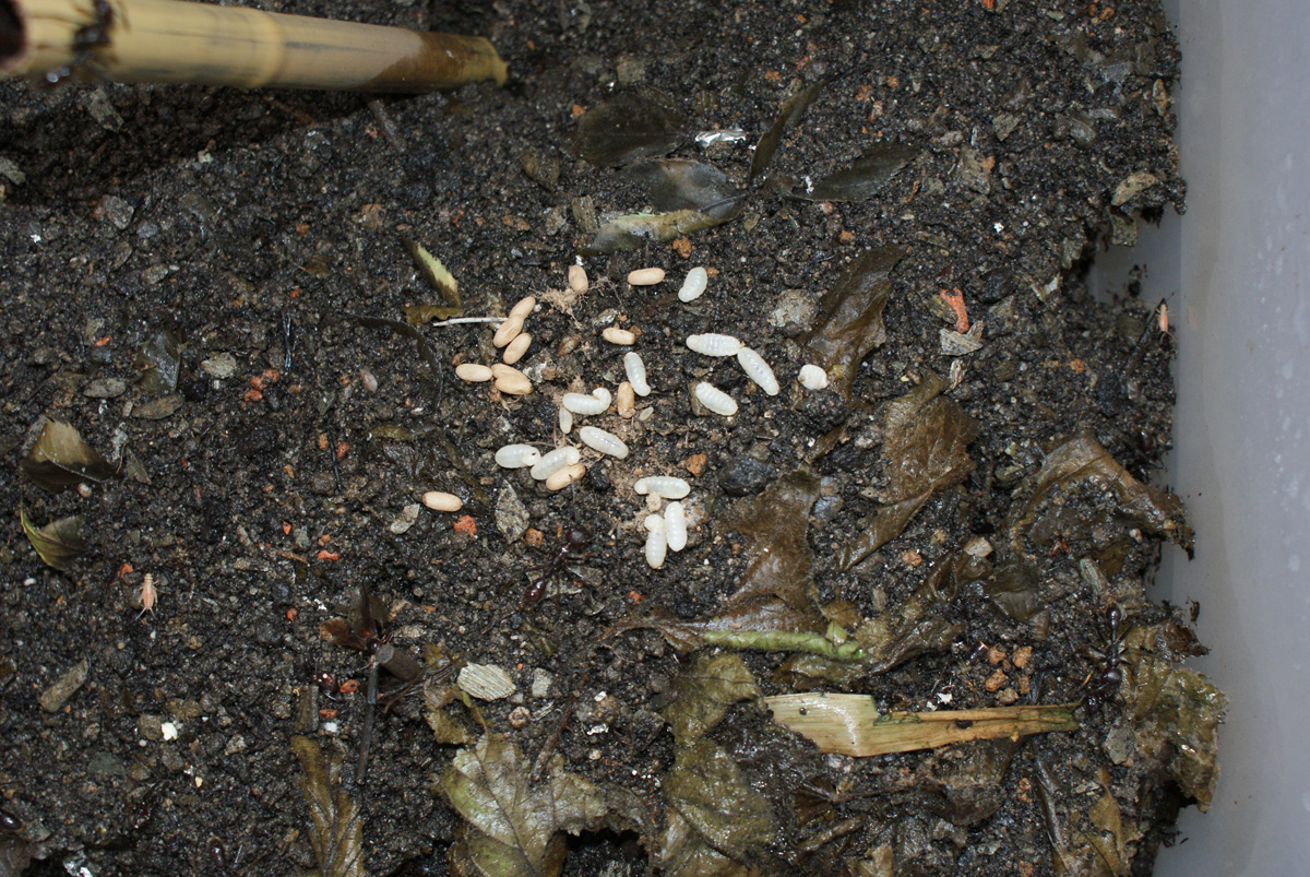 unter anderem auch Brut von Camponotus ligniperdus (Larven) sowie Puppen von L. flavus.