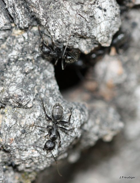 Aus versehen habe ich ein Stück Rinde an einem Baumstumpf abgebrochen und sofort brach die Hölle los! Sehr agressiv die Tiere...