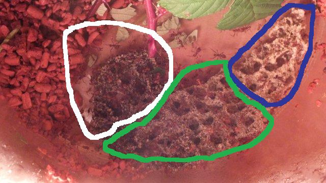 Diese sind alte Blätter die ich dort reinlege damit ich die Ameisen nicht gewaltsam abschütteln muss.