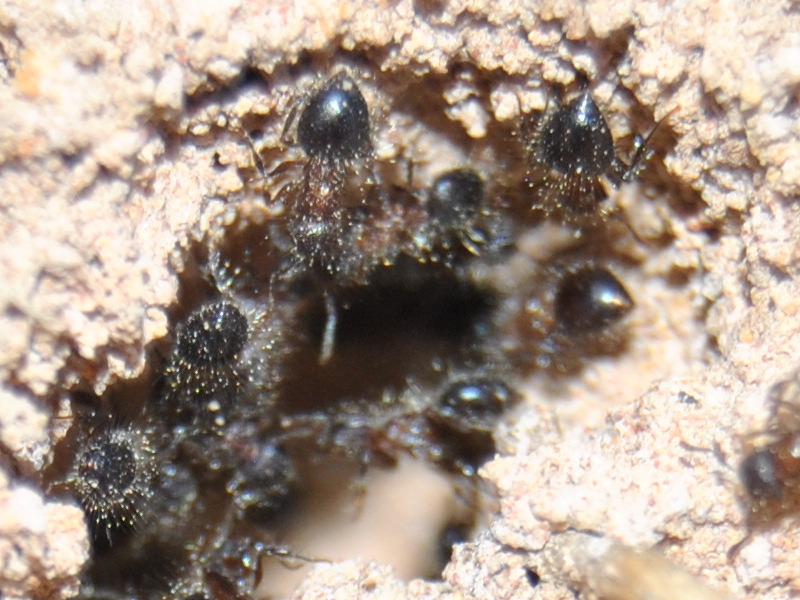 I caught a couple of queens, and only one is laying eggs, the others wanders in the test tube. Some died. I give to all queens a tiny droplet of honey which have been accepted. I keep them in standard test tubes, at 28-29°C, lower than the temperature in the wild, which some day can go up to 35-37°C. The nest were in full sun in a dry area near a rice field.
